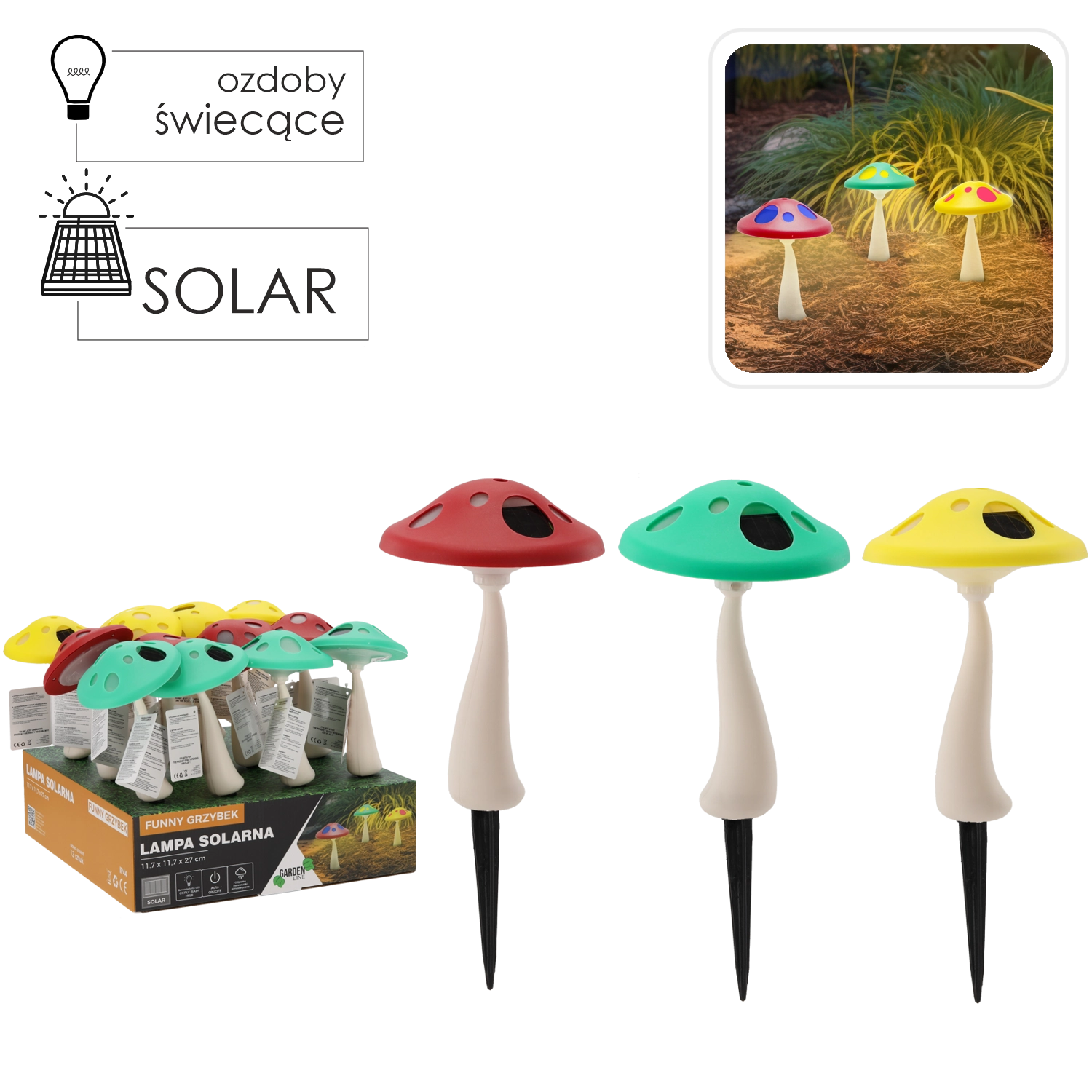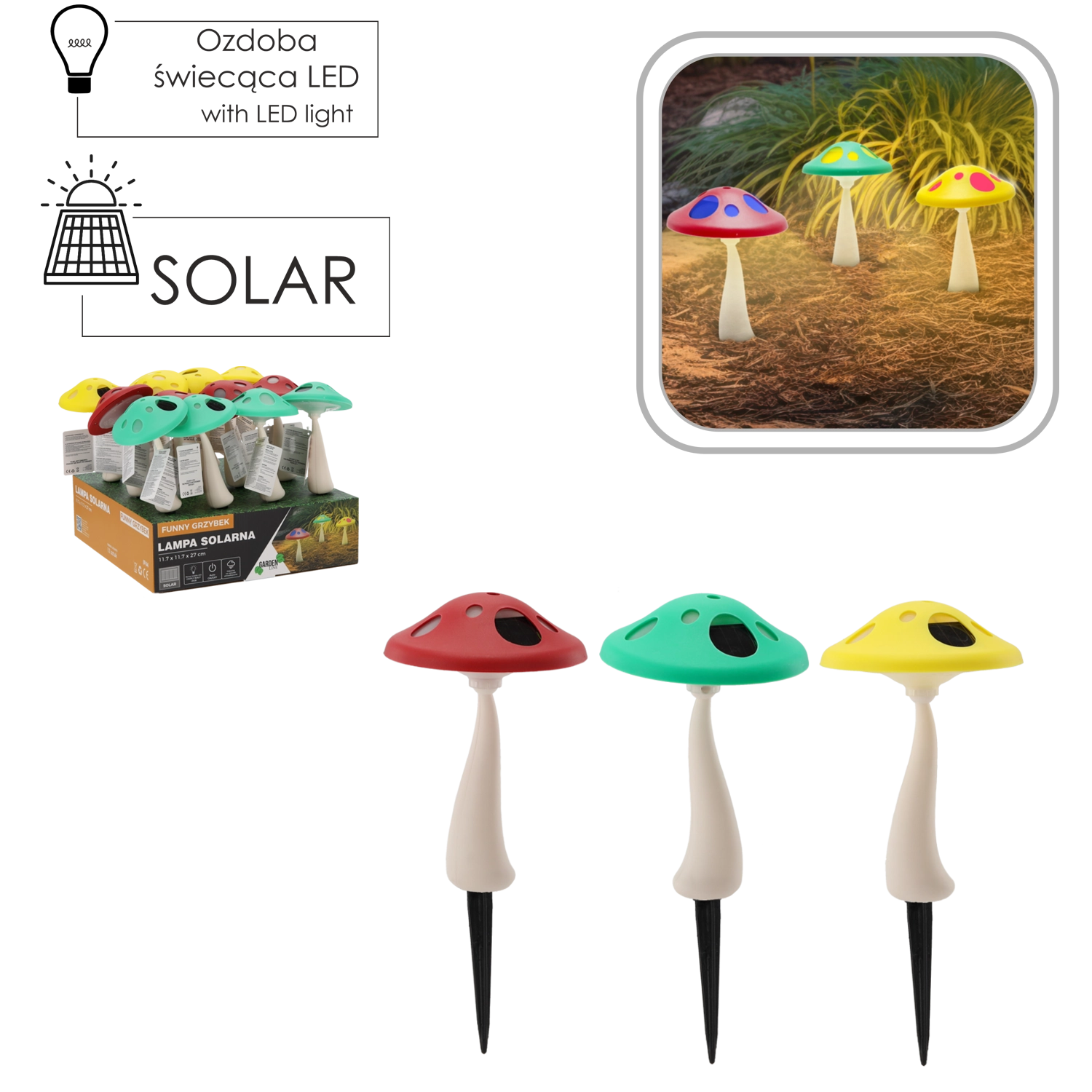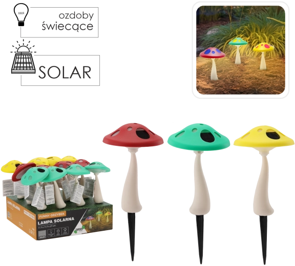 Gør din have lysere med legesyge solcellelamper formet som svampe. Takket være kombinationen af hvid og RGB LED skaber de imponerende lyseffekter, som liver både stier og bede op. Automatisk opladning fra solen, drift i op til 6–7 timer og et robust design med jordspyd gør dem til stilfuld og vedligeholdelsesfri udendørsbelysning.