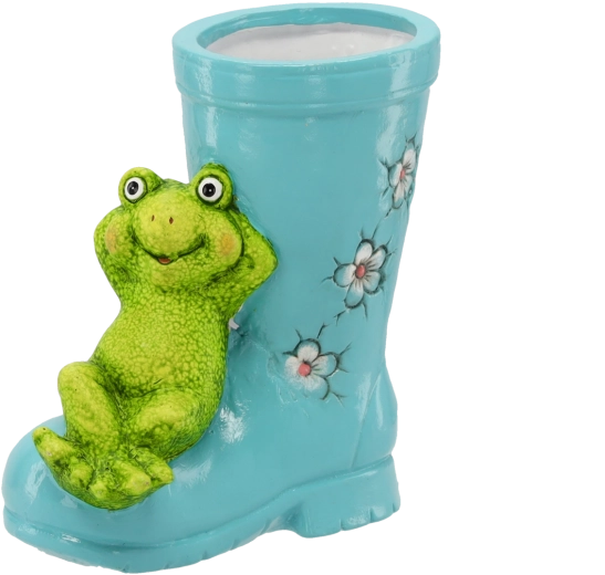 En sød plantekrukke formet som en gummistøvle med en frø giver din grønne oase en legende charme og samtidig et praktisk sted til mindre planter. Takket være det vejrbestandige materiale passer den perfekt i haven, på terrassen og altanen.