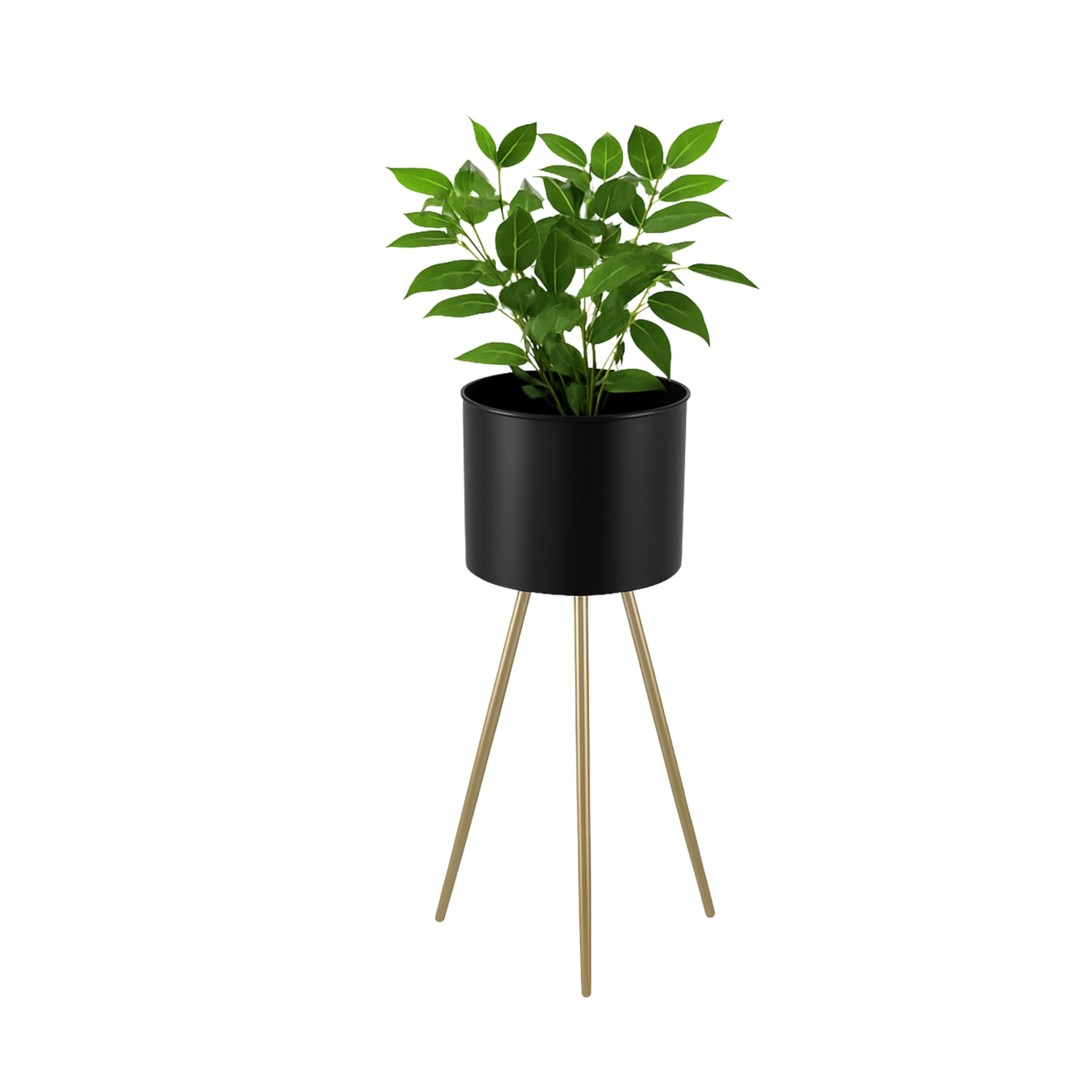 Stilfuld blomsterstand i størrelsen 18 × 18 × 50 cm i sort med guldfarvede ben er ideel til moderne interiører. Den byder på stabil metalkonstruktion, elegant, minimalistisk design og nem vedligeholdelse, så den gør sig flot i stuen, soveværelset, på kontoret og på en overdækket altan.