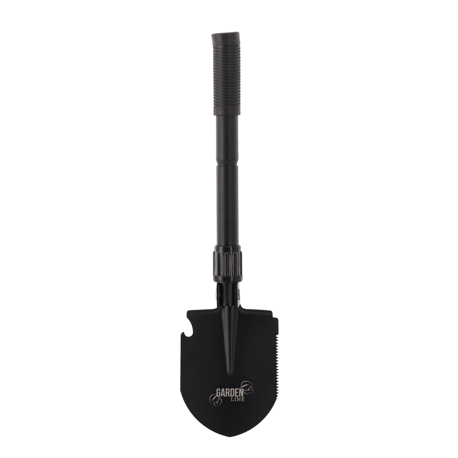 Gravning, hakke til at bryde hård jord og rødder, savkant på bladet, flaskeåbner og integreret kompas – alt lige ved hånden i et kompakt sæt.