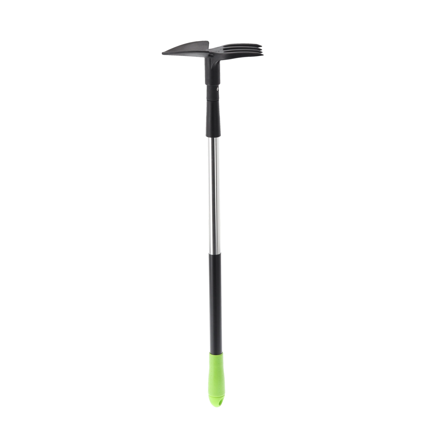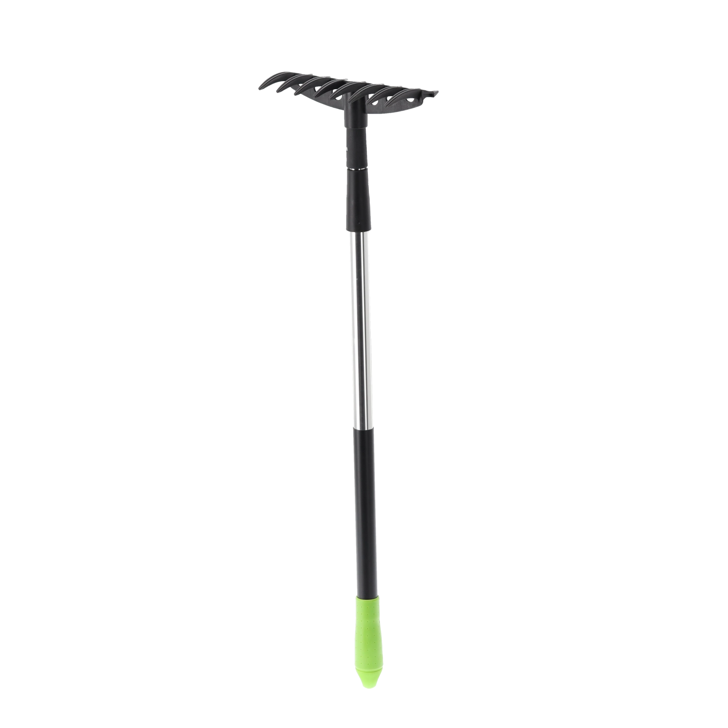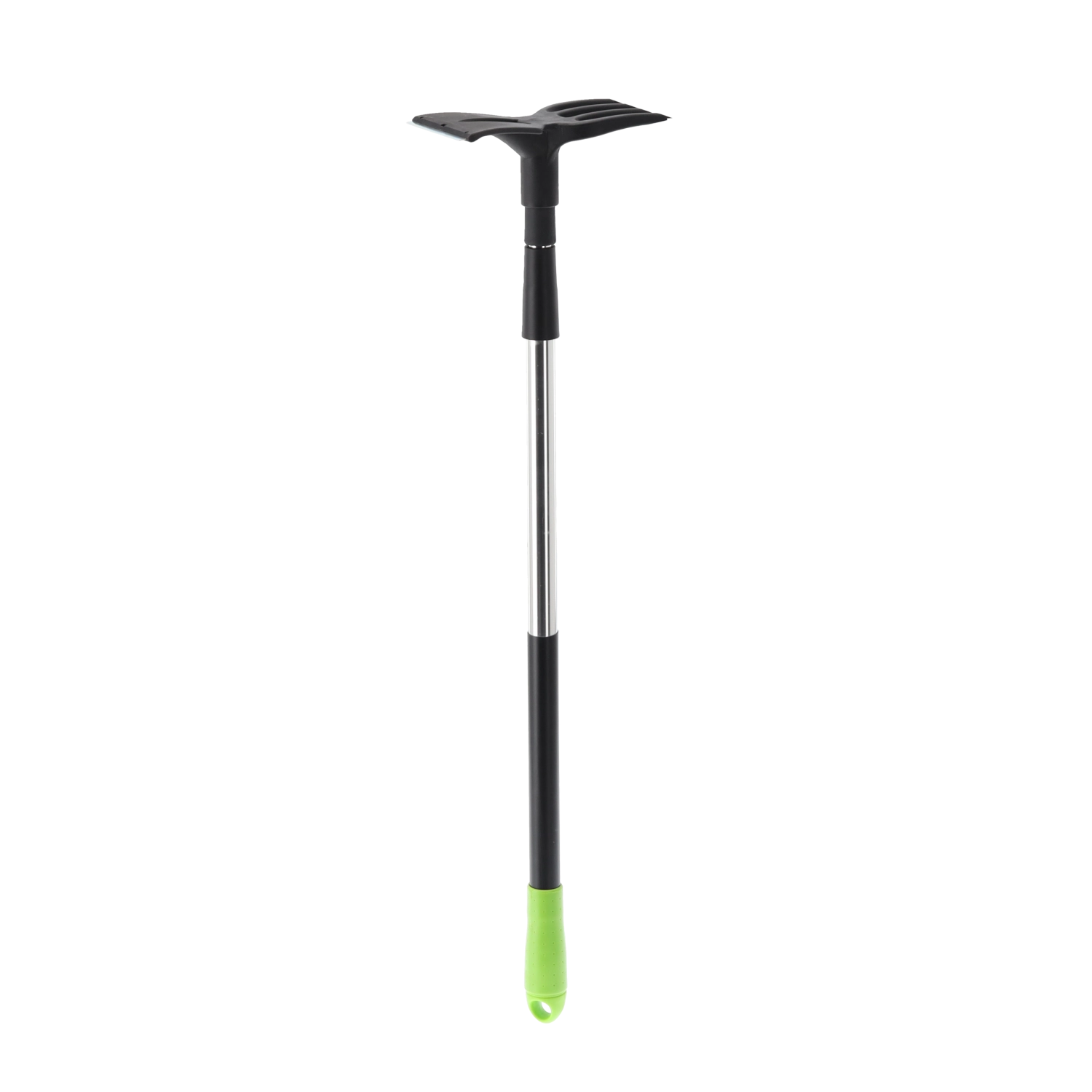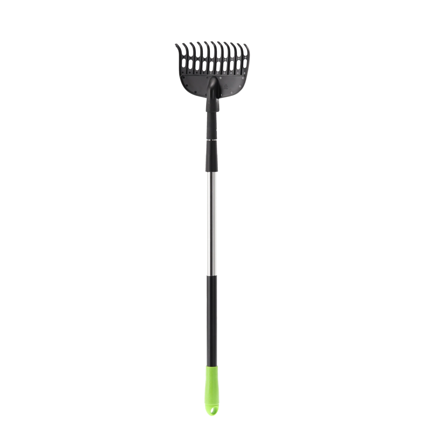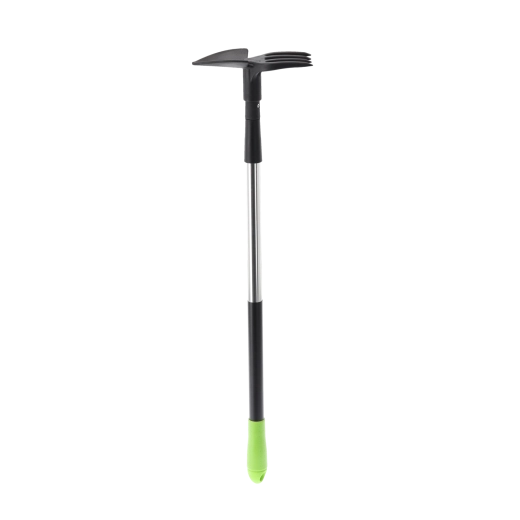 Universelt 10-i-1 havesæt med udskiftelige hoveder og en teleskopisk aluminiumskaft, der sparer både plads og tid. Skift hurtigt tilbehør med ét klik og klare rivning, lugning, løsning af jord, beskæring, rengøring samt vinduesvask. Den ideelle løsning til året-rundt vedligeholdelse af haven, indkørslen og husholdningen.