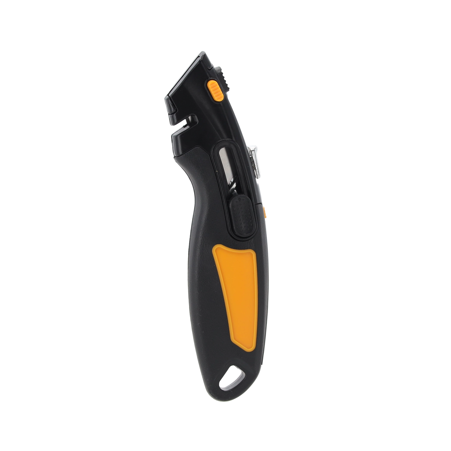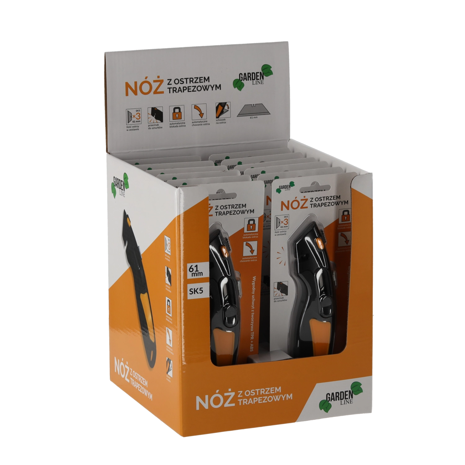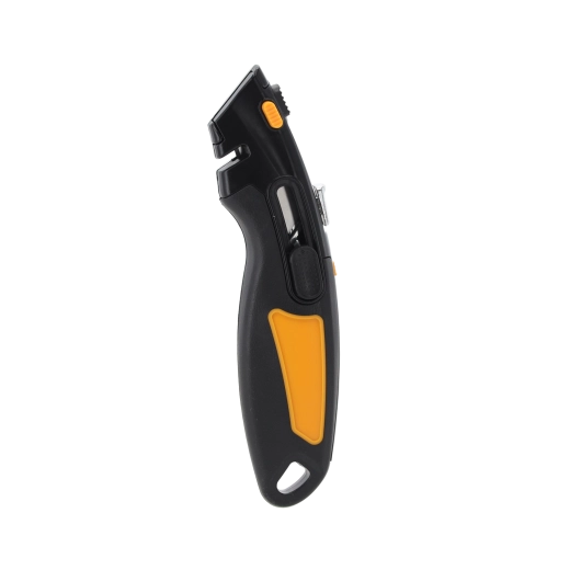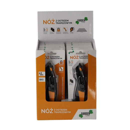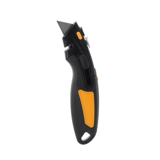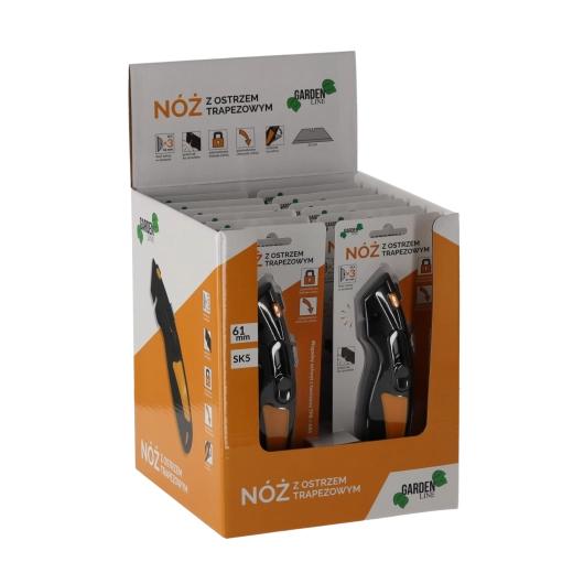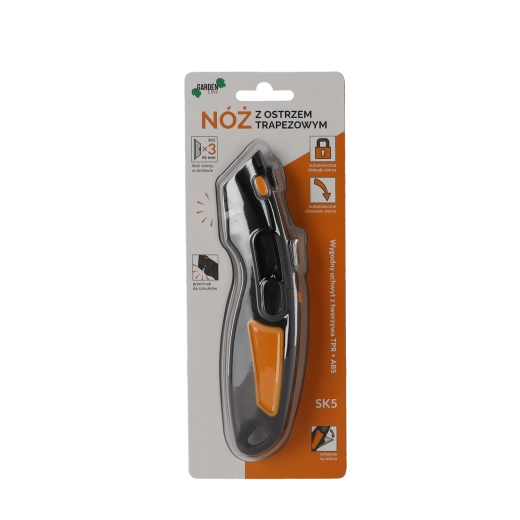 Leder du efter et pålideligt skæreværktøj til værksted, lager og husholdning? Denne sikkerhedskniv med trapezformet SK5-klinge kombinerer en holdbar metalkonstruktion med fokus på sikkerhed. Den automatiske lås og automatiske tilbagetrækning af klingen minimerer risikoen for skader, mens det ergonomiske håndtag i ABS og TPR sikrer et fast og behageligt greb.