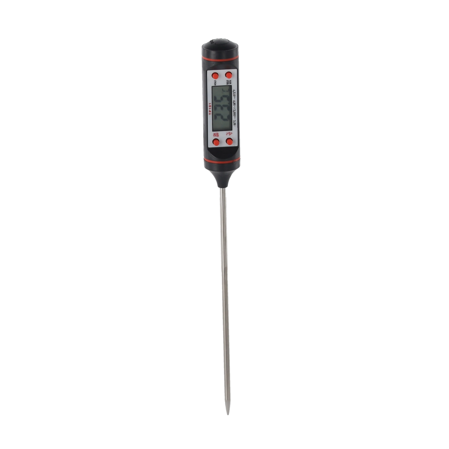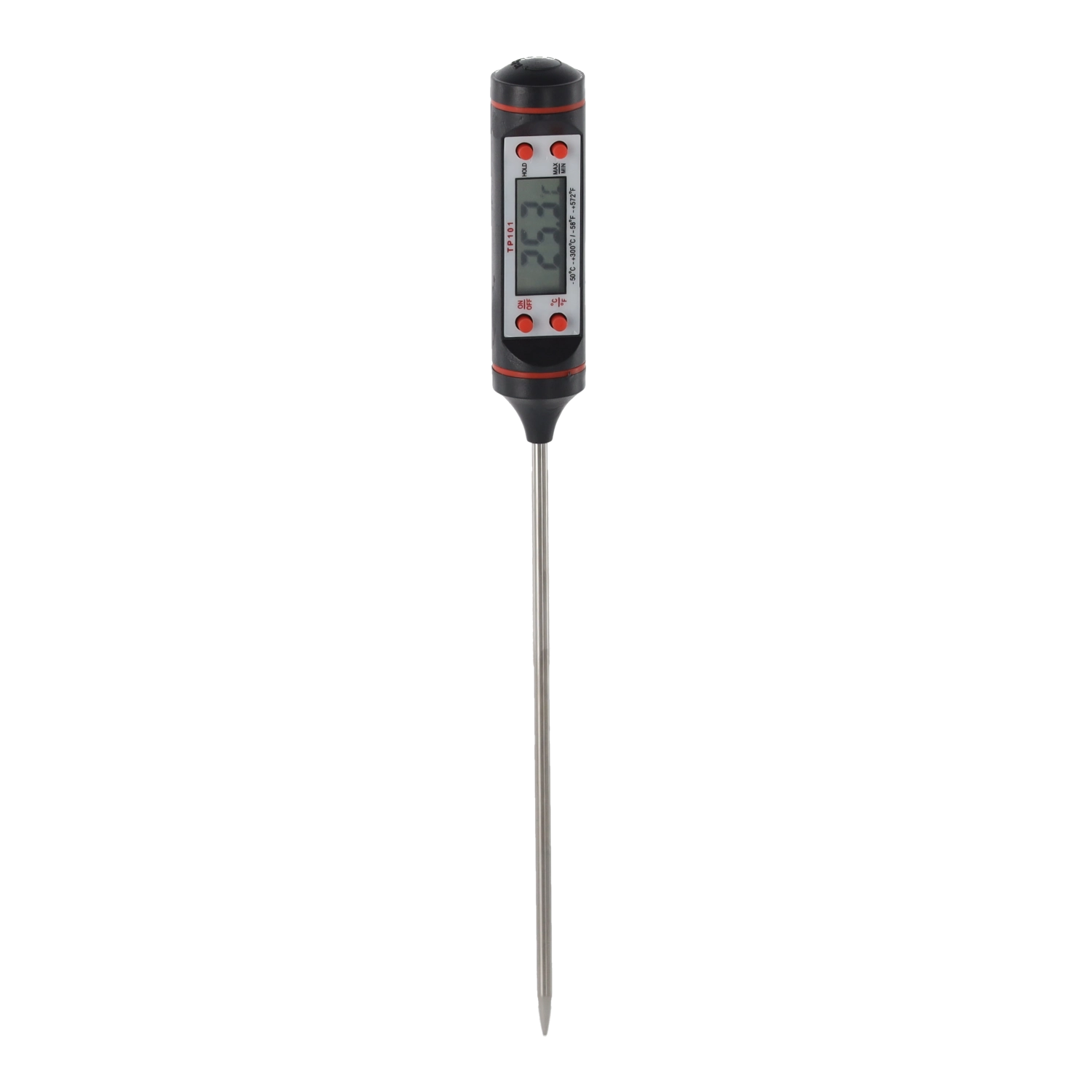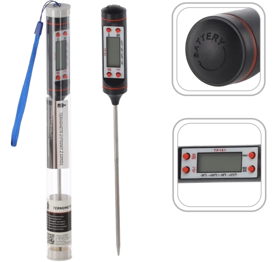 Det digitale køkkentermometer med metalsonde på 22,5 cm er ideelt til måling i dybe gryder, i kød og bagværk. Den letlæselige LCD-skærm giver et hurtigt overblik over den aktuelle temperatur, så du opnår perfekte resultater uden gætterier.