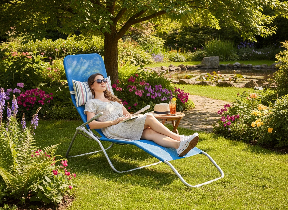 Sæde og ryglæn i textilene 1×1 er behagelige, nemme at rengøre og tørrer hurtigt – et ideelt valg til have, terrasse og ved poolen.