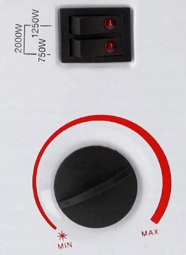 Vælg 750, 1250 eller 2000 W efter det aktuelle behov. Fra let ekstra varme til hurtig opvarmning af rummet uden unødvendigt forbrug.
