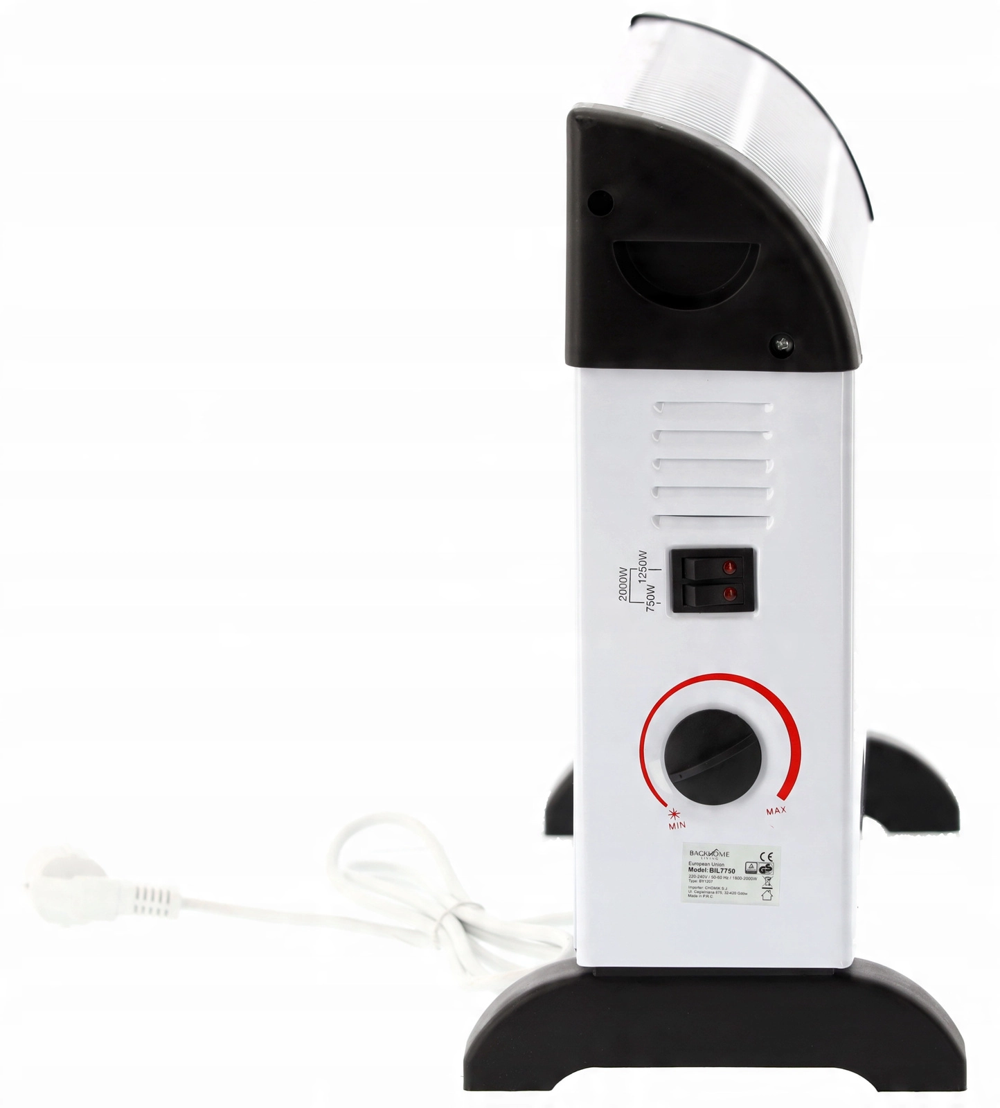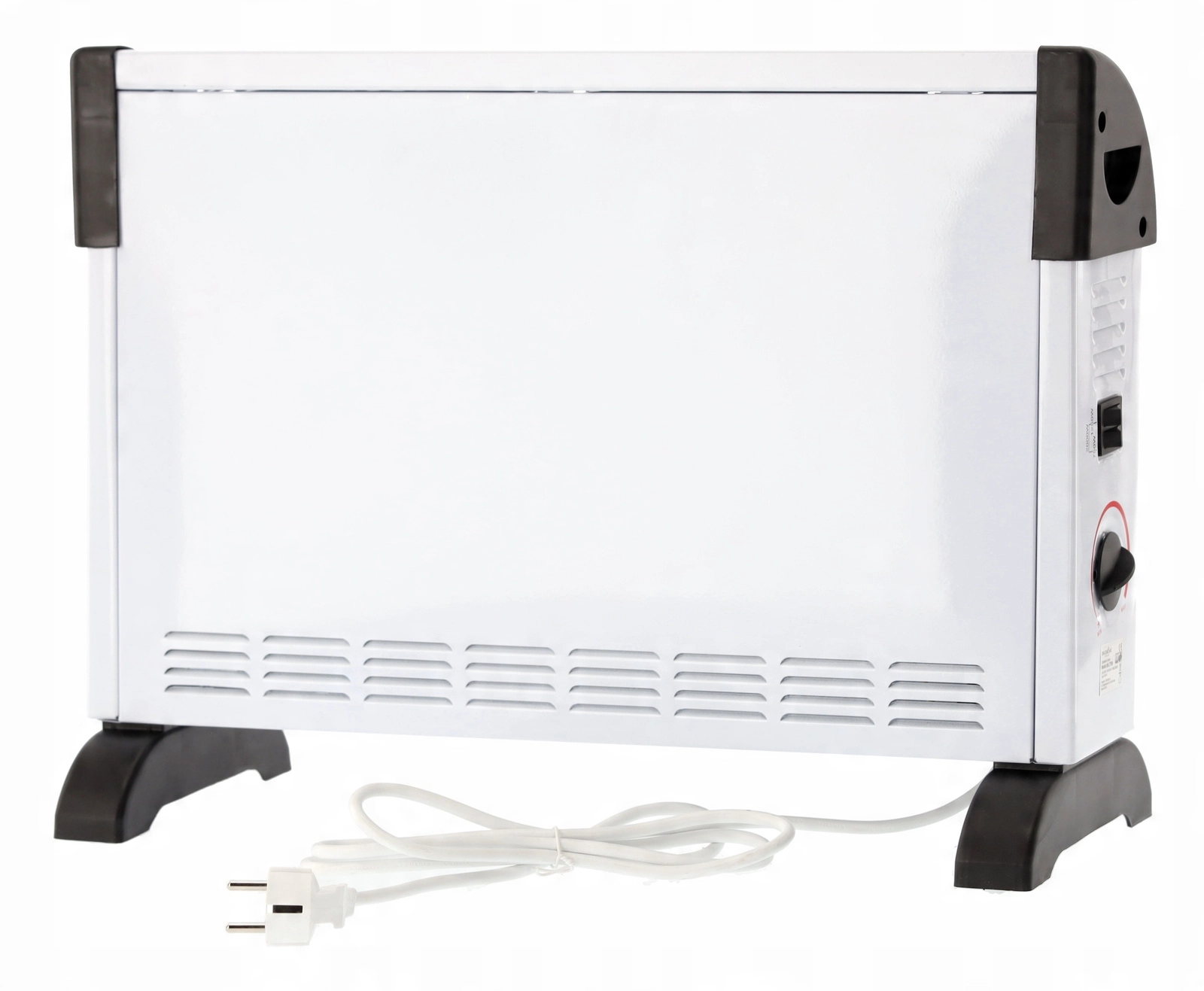 Den praktiske betjening i siden giver let valg mellem tre effektniveauer og trinløs termostatindstilling. Integreret overophedningsbeskyttelse øger sikkerheden ved daglig brug. Stabile fødder og en let konstruktion gør det nemt at flytte og placere efter behov.