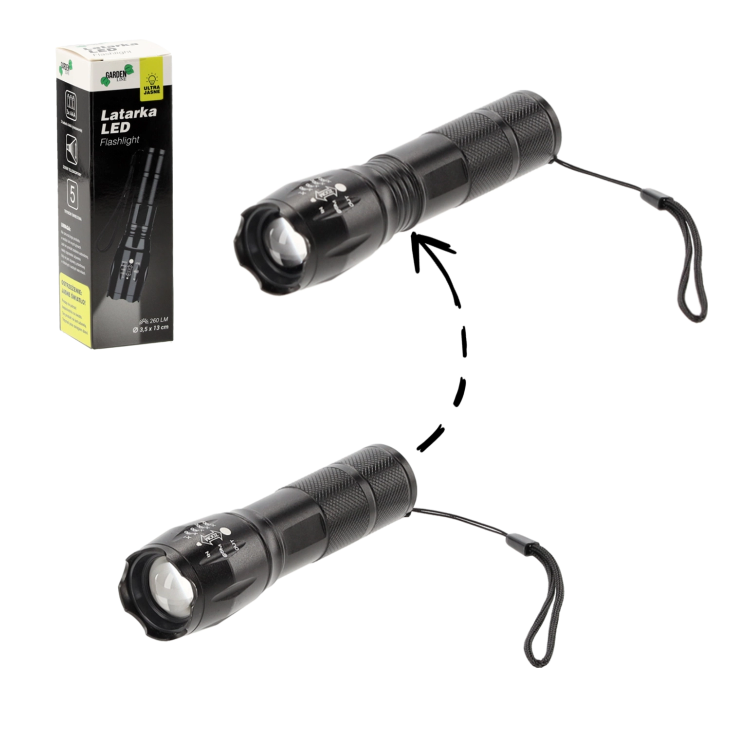 Denne sorte LED-lommelygte kombinerer 260 lumen med fremragende bærbarhed. Det teksturerede metalhus med rem ligger sikkert i hånden, og med fokus/zoom kan du nemt tilpasse lysstrålens kegle til brugen – fra bred spredning til koncentreret stråle.
