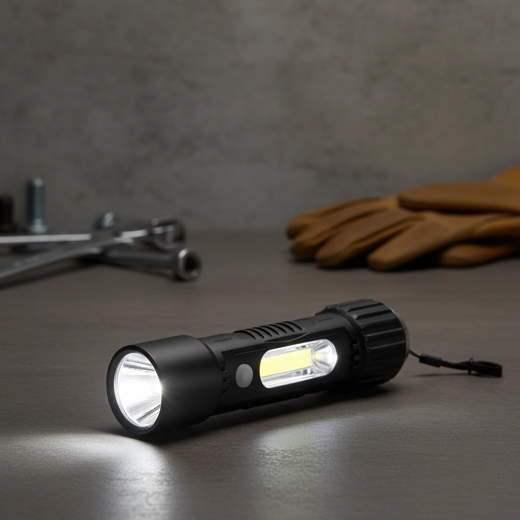 Leder du efter en enkel og funktionel lommelygte, der ikke svigter, når du har brug for den? Denne kompakte LED-lommelygte kombinerer effektiv belysning, lav vægt og robust udførelse i plast. Ideel til værksted, garage, bil, sommerhus og aftenture.