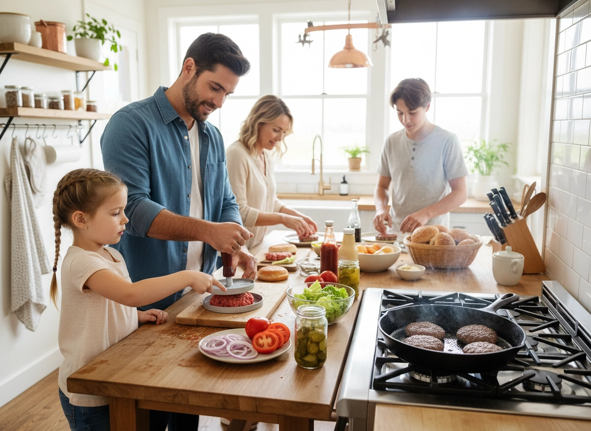 Formbasen presser kødet til samme form og tykkelse, så burgeren steges ensartet og holder formen ved stegning og grillning.