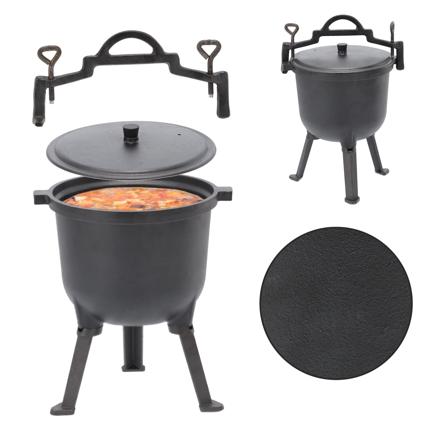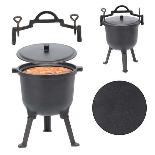 Oplev glæden ved madlavning i naturen med en holdbar støbejernsgryde, der klarer alt fra langsom simren til kraftig kogning over åben ild. Takket være kvalitetsstøbejern fordeles varmen jævnt, maden brænder ikke på og forbliver saftig og fuld af smag. Kapaciteten på 8 liter rækker rigeligt til både familie og venneflok.