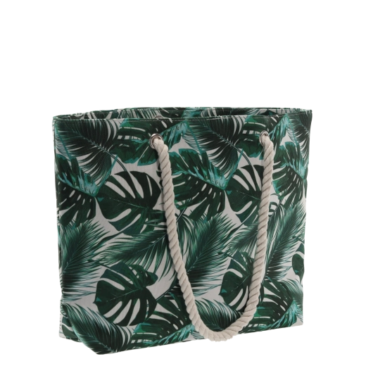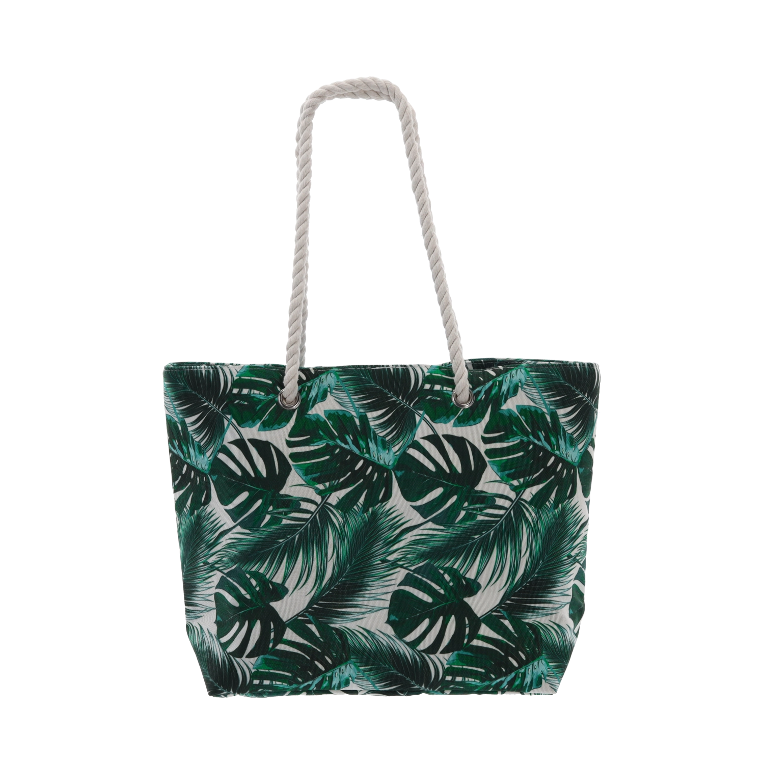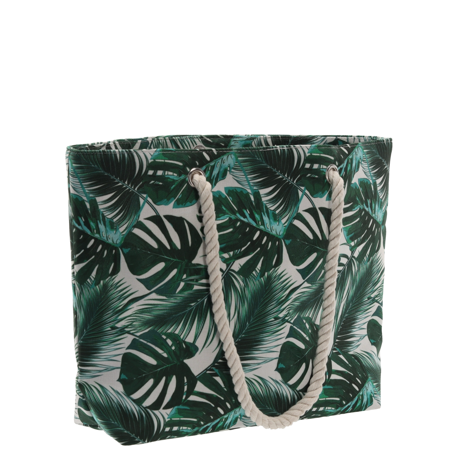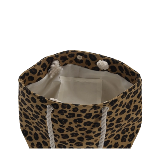 Stilfuld strandtaske, der kombinerer lethed, stor kapacitet og holdbare rebstropper. Takket være målene 46 × 33 cm rummer den nemt håndklæde, solcreme, drikkeflaske og andre nødvendigheder. Trendy naturmotiver – dyreprint og tropisk – giver dit sommeroutfit ekstra kant.