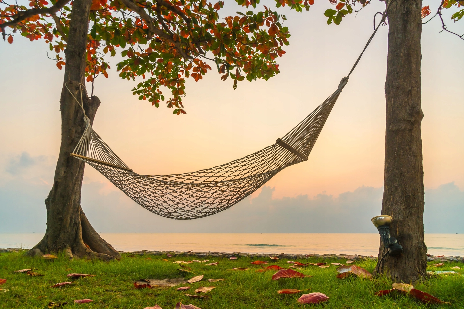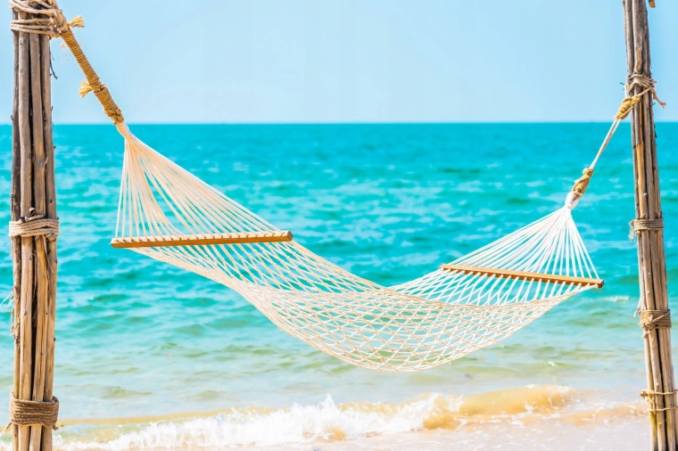 Denne elegante beige hængekøje i naturstil sørger for dine øjeblikke af ro hele dagen. Den åbne snoreflettede konstruktion er behageligt åndbar og holder sammen med træspredere liggefladen dejligt åben og komfortabel. Ideel til læsning, en eftermiddagslur eller afslapning i frisk luft.