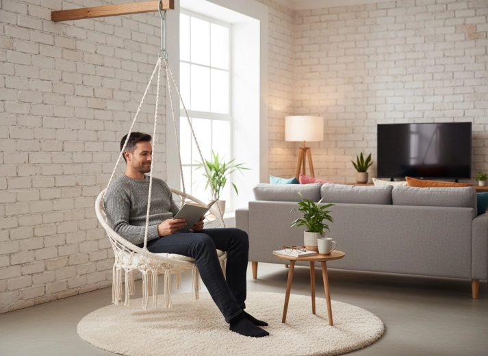 Det robuste ophængsreb og den stabile konstruktion sikrer tryg brug for hele familien til både afslapning og blid gyngen.