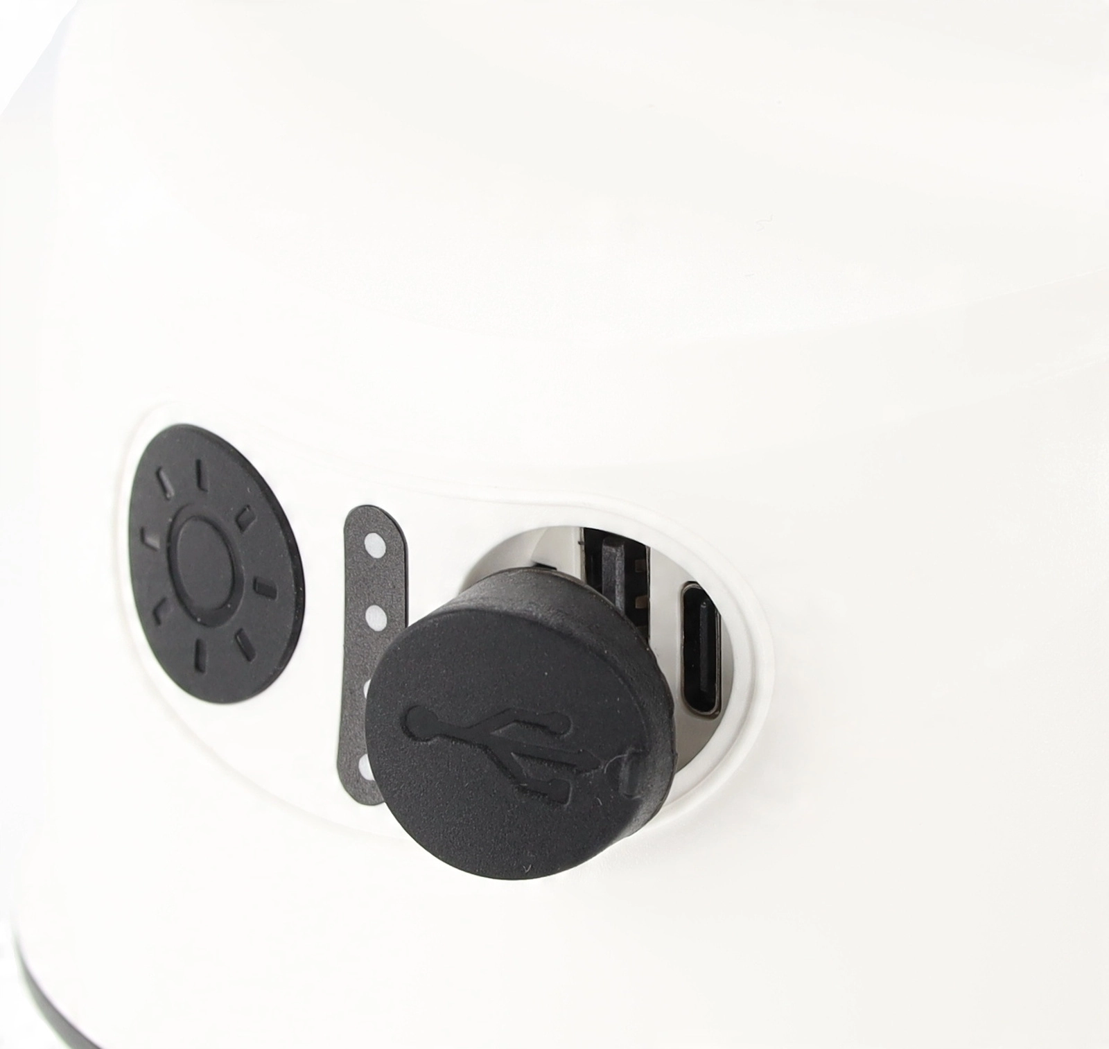 Det indbyggede 2×1200 mAh-batteri giver 5–6 timers drift. Praktisk USB‑C sikrer nem opladning i bilen, fra powerbank eller stikkontakt.