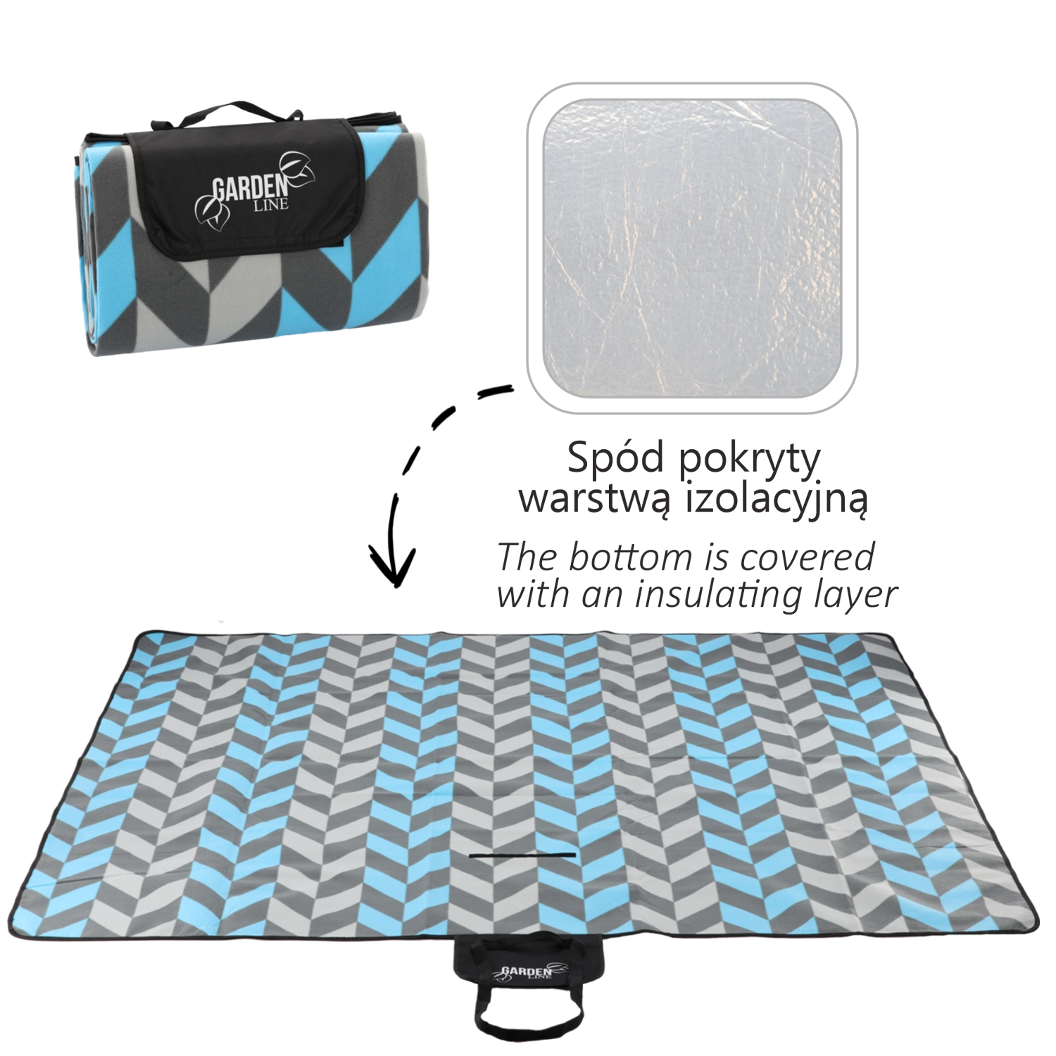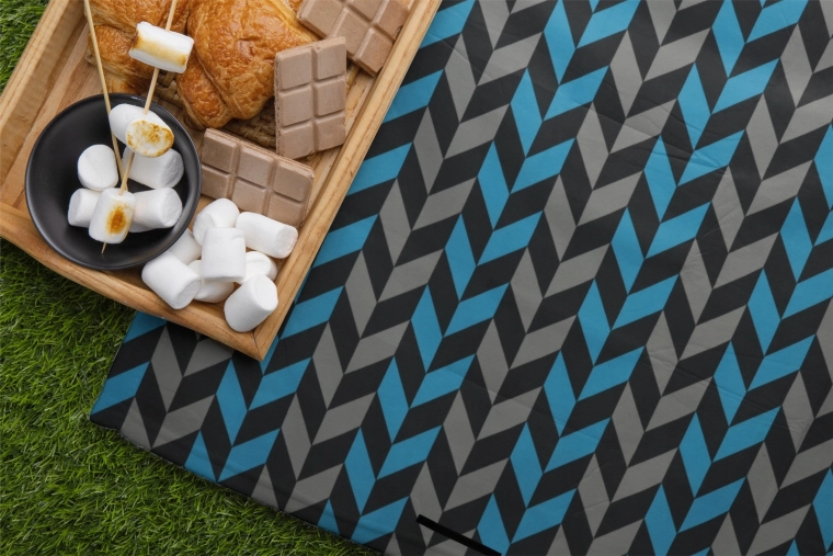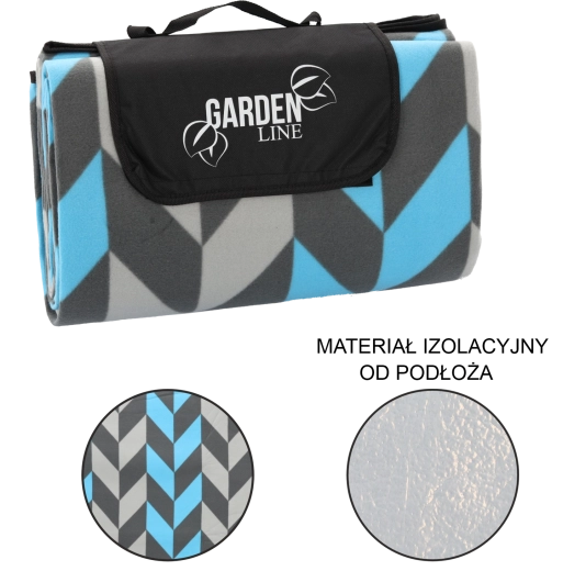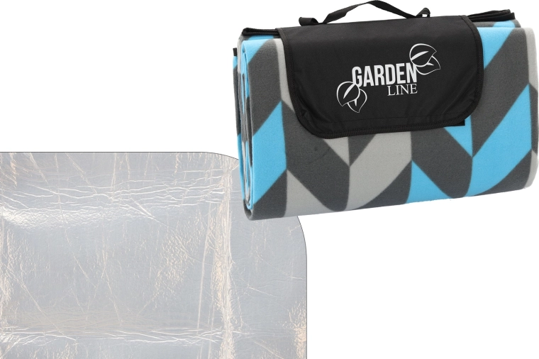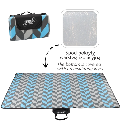 Tæppet foldes nemt til en kompakt pakke med klap med lukning, hank og rem til transport. Det moderne jolka-mønster i nuancer af blå og grå passer til enhver lejlighed og giver din picnic stil.