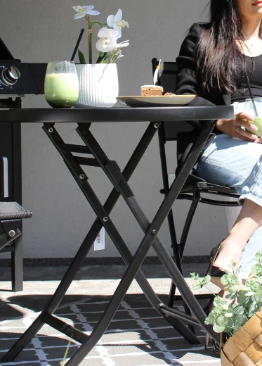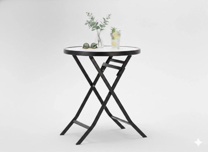 Krydsede ben og en sammenklappelig mekanisme gør det nemt at folde sammen og opbevare kompakt eller transportere – perfekt til altaner og små terrasser.