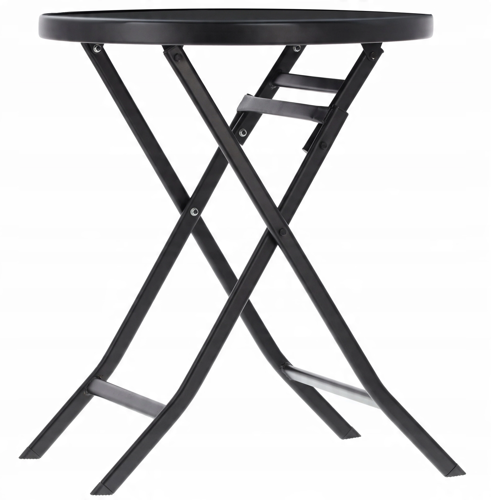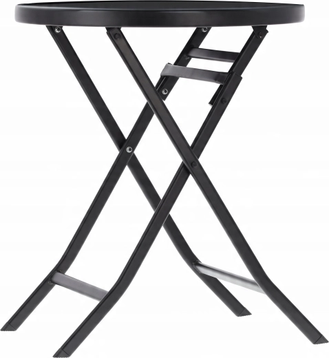 Giv dit udendørsområde stil og funktionalitet. Dette runde havebord er lavet af kvalitetsstål med pulverlakering, som sikrer stabilitet og modstandsdygtighed over for vejr og korrosion. Bordpladen af 5 mm hærdet glas i sort fremstår elegant og er samtidig let at rengøre.