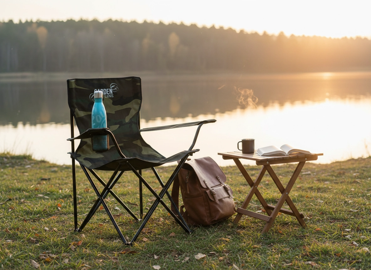 Integreret holder i armlænet holder flaske eller bæger inden for rækkevidde. Komfort ved vandet, på campingpladsen og til picnic.