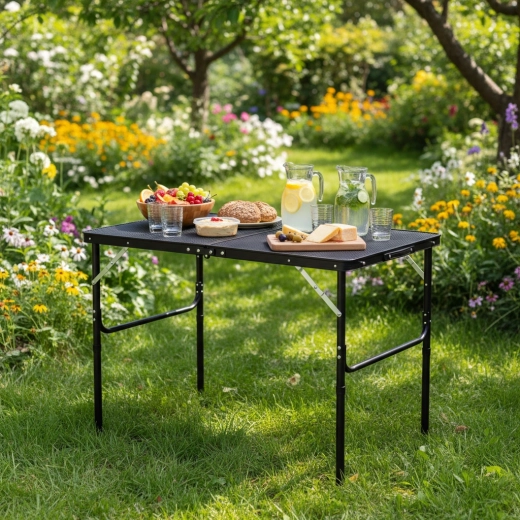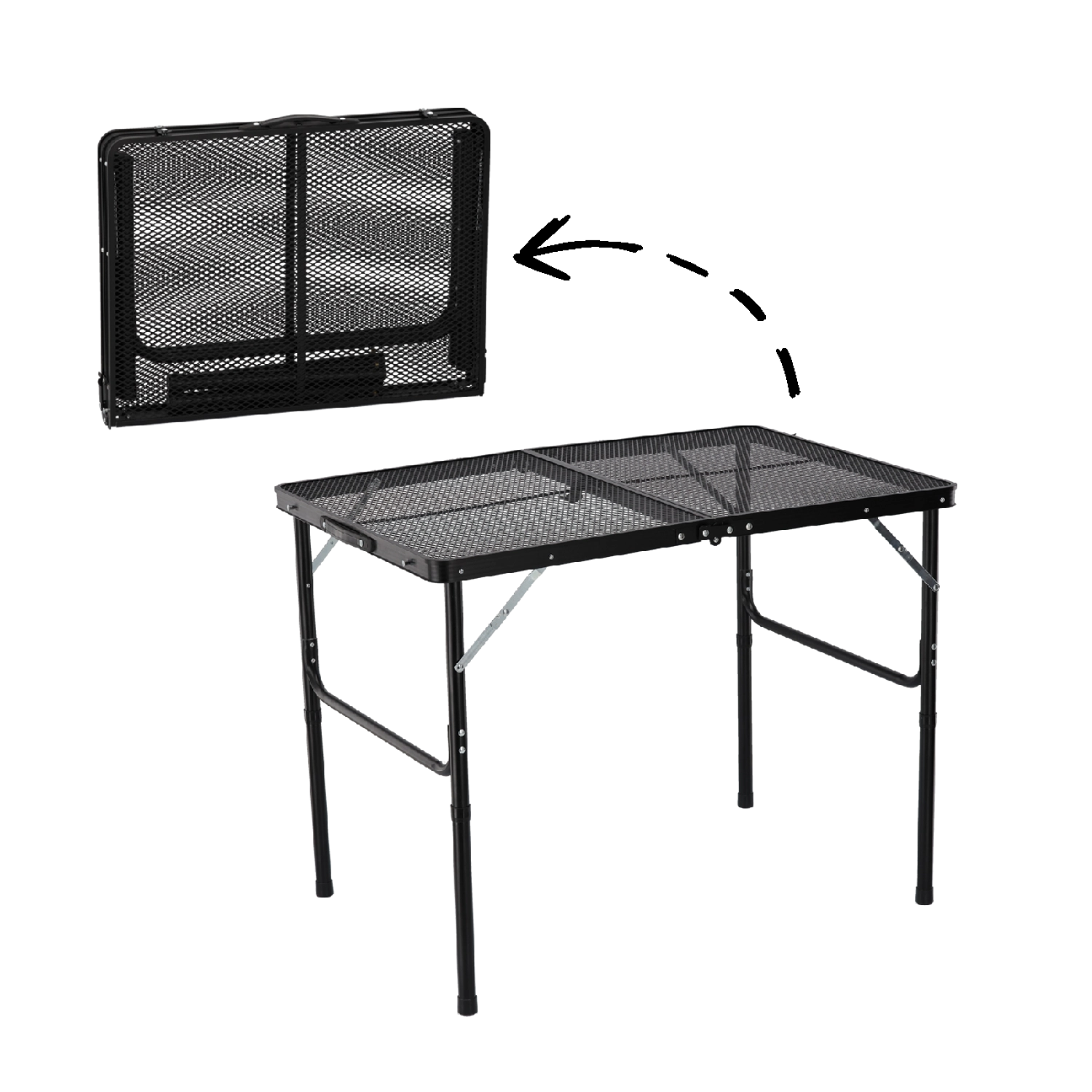 Nyd komfortabel og stabil bordplads hvor som helst udendørs. Dette sammenklappelige campingbord kombinerer holdbart stål med en sammenklappelig konstruktion for nem transport og opbevaring. Med to højdepositioner på 40 og 70 cm tilpasser det sig både afslapning, madforberedelse og udendørs arbejde.
