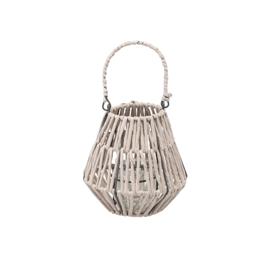 Denne elegante lanterne i hvid kombinerer et naturligt rattanlook med en praktisk glasindsats, der beskytter både lyset og de omkringliggende overflader mod voks. Ideel til at skabe en afslappet stemning på terrassen om aftenen, i stuen eller ved festlige borddækninger.