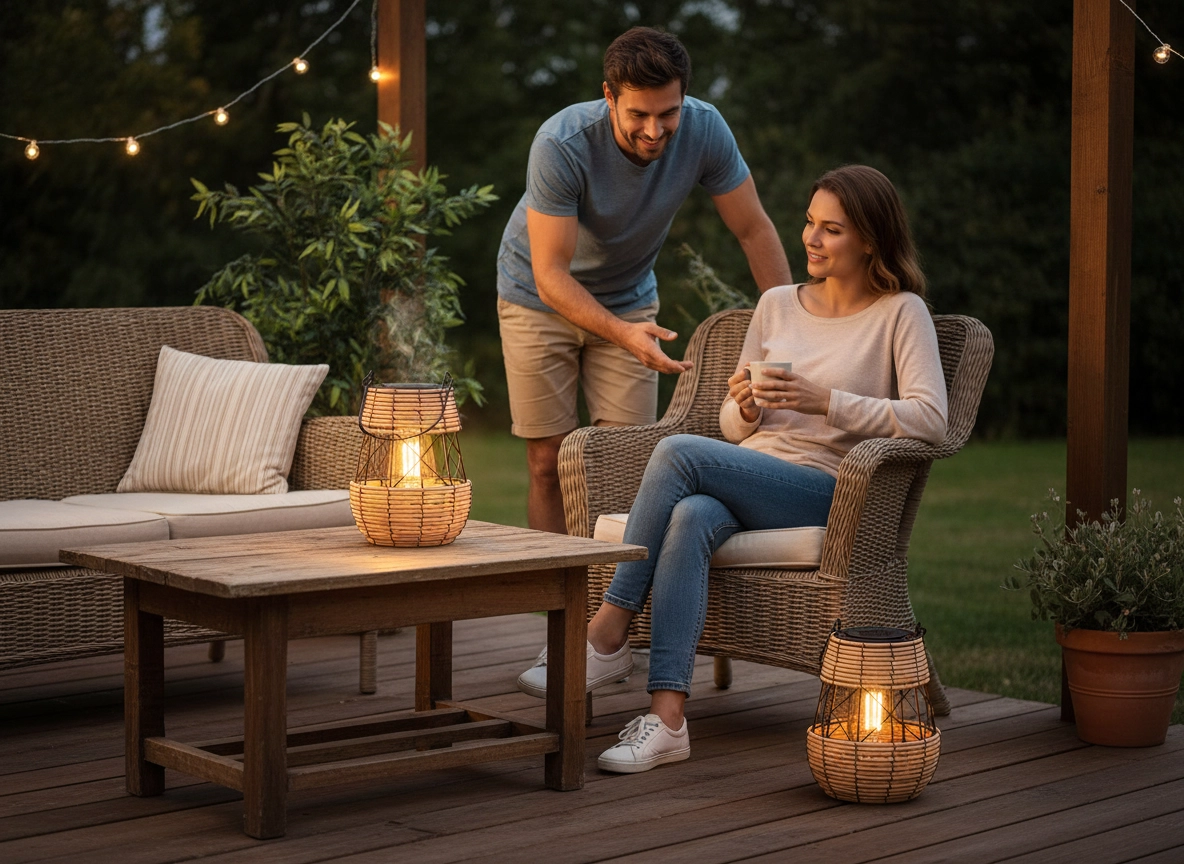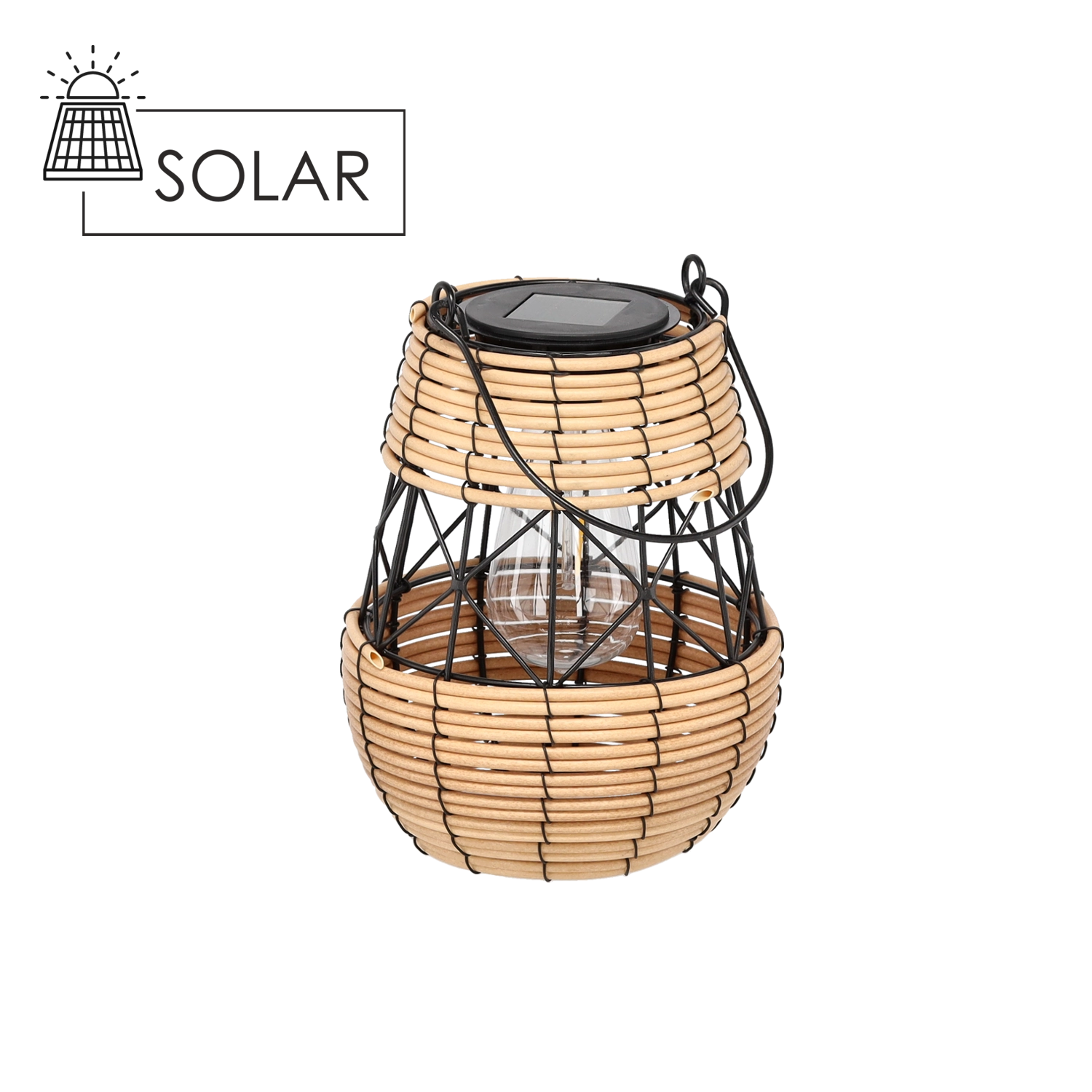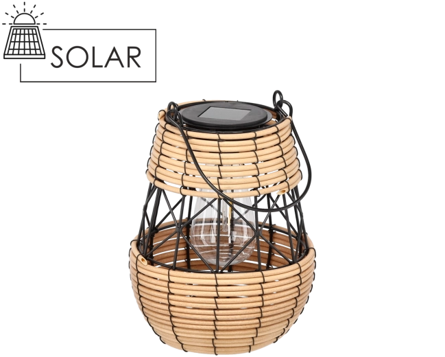 Opdag en nem måde at skabe stemning i dine udendørsområder. Denne dekorative solarlanterne med rattanlook og sorte metaldetaljer oplades af solen om dagen og tændes automatisk efter mørkets frembrud med et behageligt, varmt lys. Ingen kabler, ingen batterier – bare ren komfort og hyggelig glød.