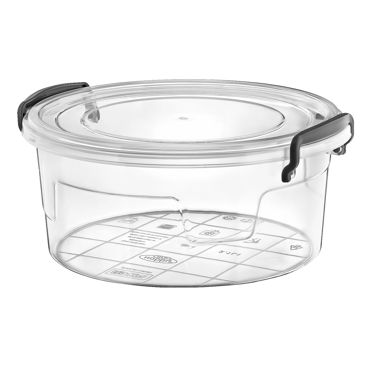 Den runde Multi Box 2,1 l tilbyder pålidelig og hygiejnisk opbevaring af madvarer. Den er fremstillet af robust plast egnet til fødevarekontakt, og de kompakte mål gør, at den nemt passer i køleskab, fryser eller køkkenskab. Det gennemsigtige korpus gør det lettere at orientere sig i indholdet og sparer tid ved madlavning og forberedelse af måltider to go.