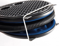 Medfølgende slange med tre forskellige endestykker, som passer til de fleste ventiler på oppustelige madrasser, badebassiner, legetøj og bolde.