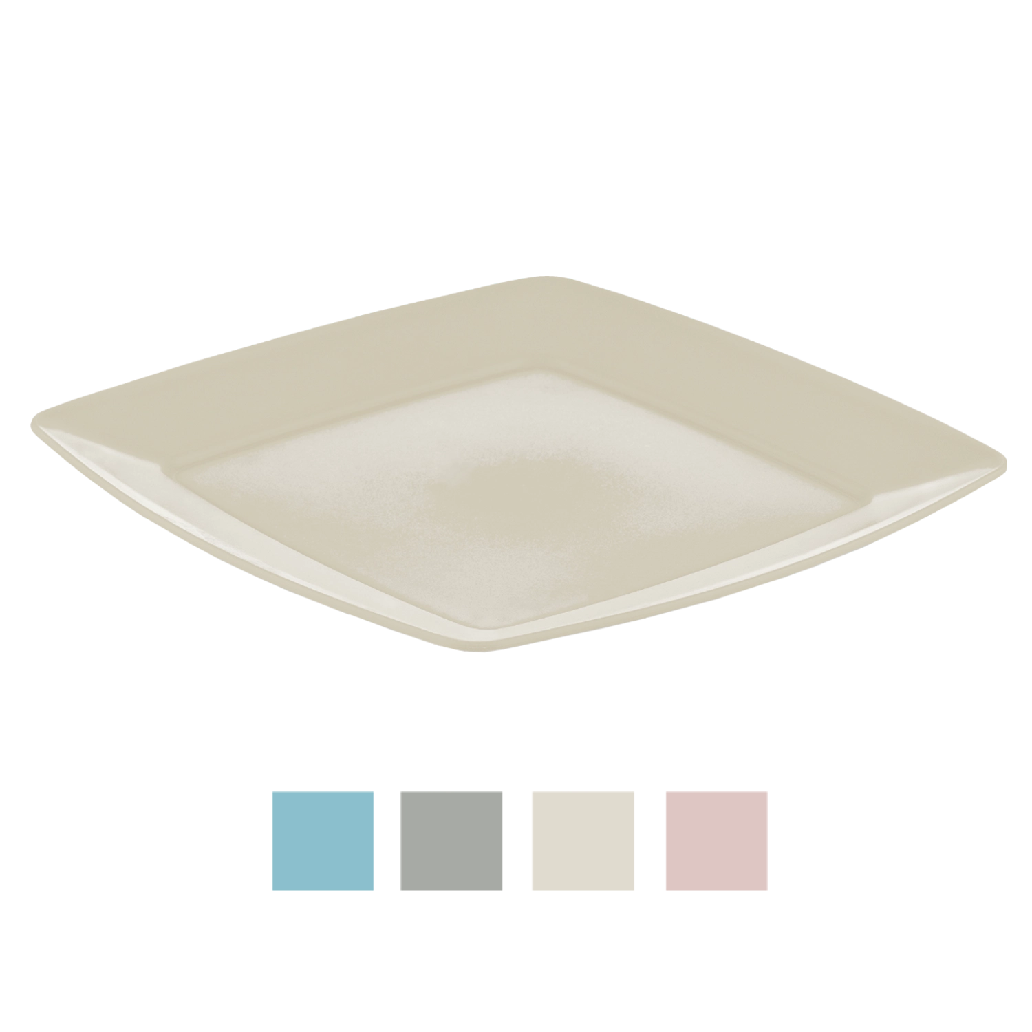 Den kvadratiske flade på 23,5 cm med en let forhøjet kant gør serveringen nemmere og mindsker risikoen for at saucer eller krummer løber ud.