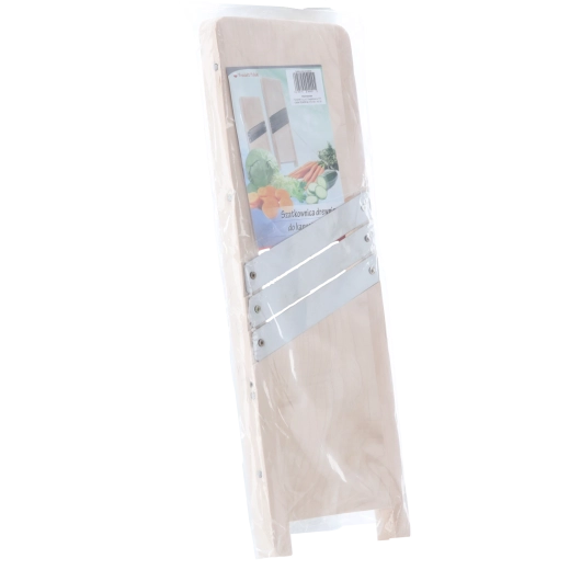 Denne træskraber/mandolin med tre skarpe knive i rustfrit stål er ideel til tilberedning af hjemmelavet surkål, salater og fine skiver af grøntsager. Takket være de skråt placerede klinger skæres råvarerne jævnt og med minimal anstrengelse. De kompakte mål 44 × 15 cm gør den nem at håndtere og opbevare.
