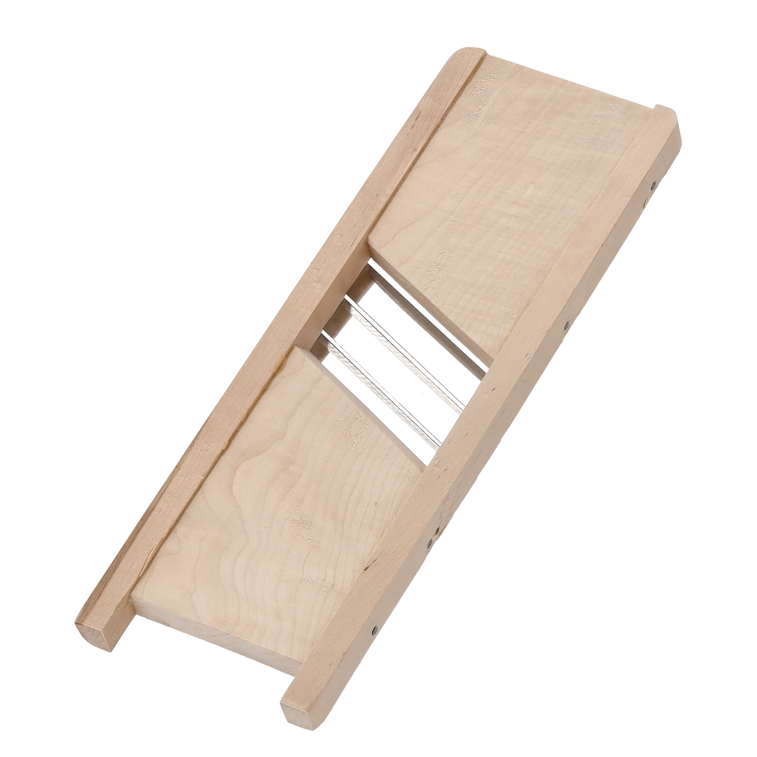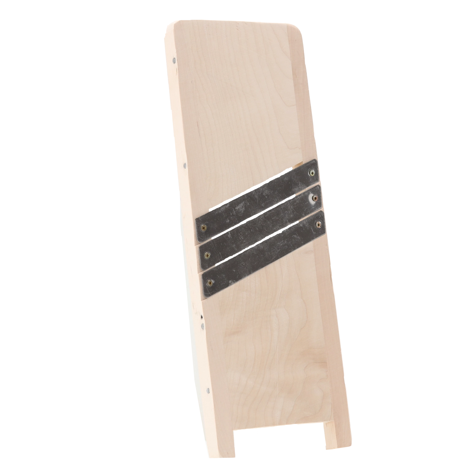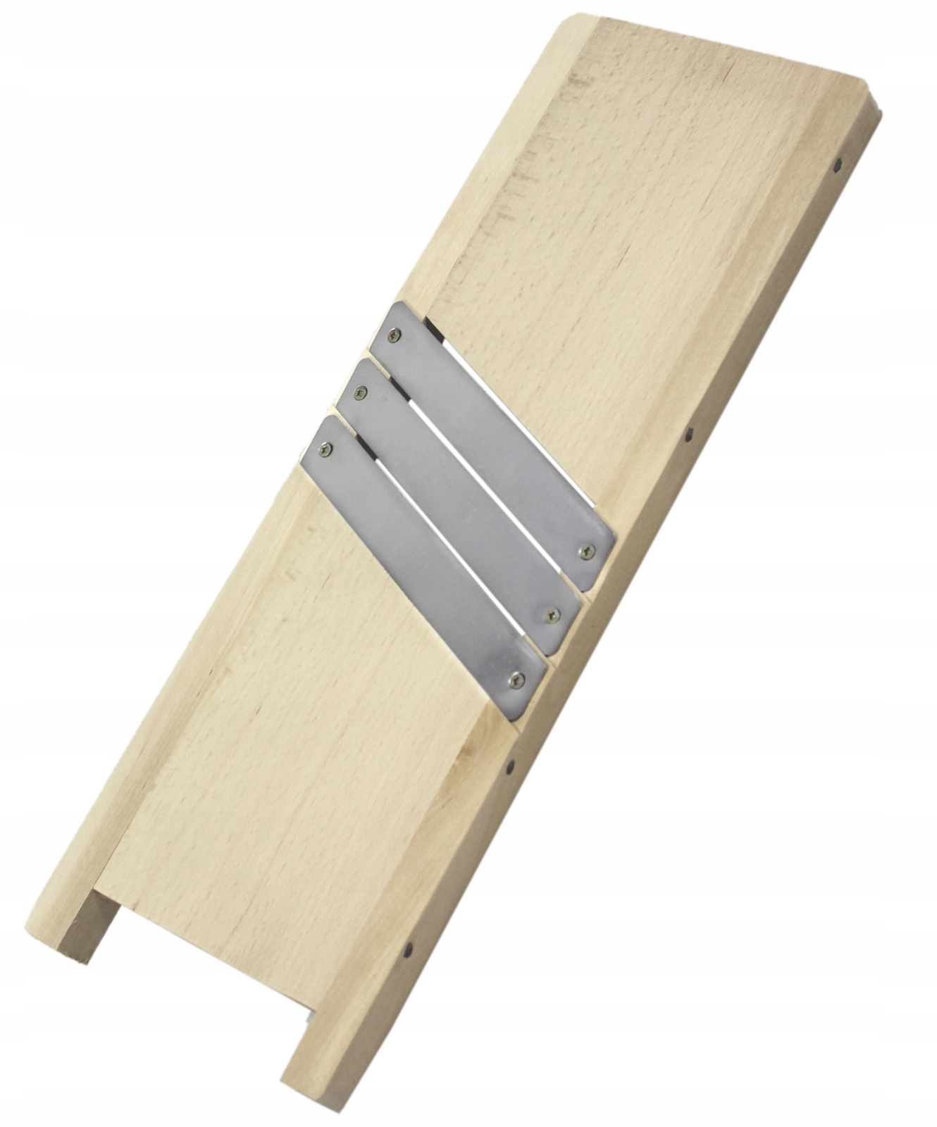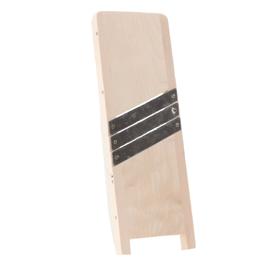 Den robuste træramme sikrer stabilitet under brug, sidelisterne guider råvarerne korrekt, og knivene i rustfrit stål giver lang levetid og et rent snit. Et fremragende valg til daglig brug i køkkenet.