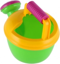 Vandkanden er lavet af plast i høj kvalitet, der tåler børns brug. Den fås i to attraktive farvekombinationer. Hvis du ønsker en bestemt farve, angiv det venligst i kommentarfeltet ved bestilling – hvis den er på lager, imødekommer vi gerne ønsket. Hvis der ikke angives en farvepræference, sender vi en tilfældig variant.