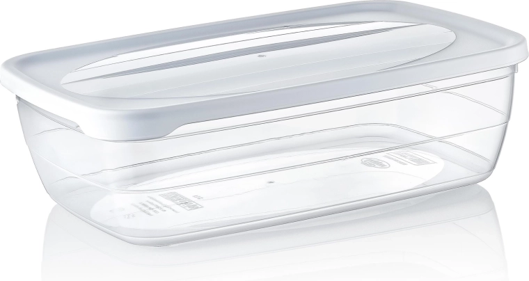 Praktisk rektangulær boks med en kapacitet på 1,2 l af kvalitetsplast til daglig brug i køkkenet og på farten. Ideel til opbevaring af mad i køleskabet, men også til tørre råvarer som mel eller ris. Takket være det tætsluttende låg kan den sikkert transportere flydende retter samt forskellige salte og søde snacks. Låg i forskellige farver muliggør nem identifikation af indhold og stilren koordinering i hjemmet.