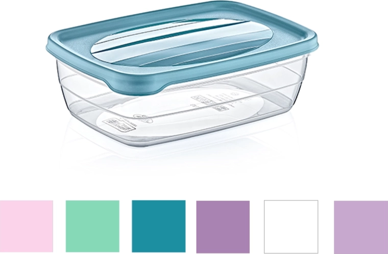Det praktiske, tætsluttende låg sikrer, at indholdet forbliver friskt og sikkert lukket – uden spild af væsker under transport. Boksen er velegnet til salater, saucer, portioner af færdigretter samt tørvarer som mel, sukker, ris eller pasta. De forskellige lågfarver gør kategorisering og hurtig orientering nemmere.