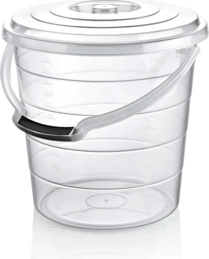 Praktisk gennemsigtig spand på 15 l med låg, ideel til husholdning, have og biavl. Takket være det transparente materiale kan du nemt kontrollere indhold og væskeniveau, mens plast egnet til kontakt med fødevarer sikrer sikker opbevaring. Måleskala på siden muliggør præcis afmåling, og det ergonomiske håndtag sammen med bundgreb gør det lettere at bære og giver stabil udhældning.