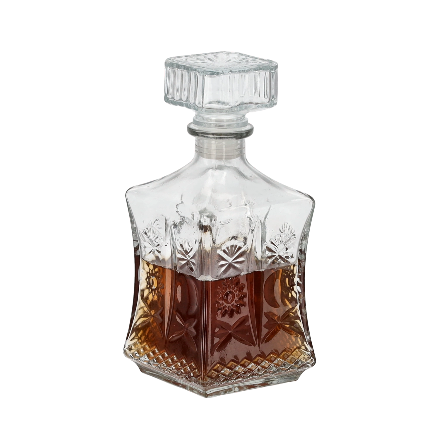 Karaffelen er fremstillet af robust glas, der troværdigt imiterer krystal. Det sikrer høj holdbarhed og et attraktivt, funklende look ved hver servering.