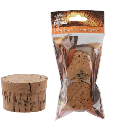 Praktisk sæt med to økologiske korkpropper med en diameter på 55 mm, ideelle til at lukke 54 l damejeanner. Den høje kvalitet sikrer pålidelig tætning, beskytter indholdet mod oxidation og ydre påvirkninger og er sikker til kontakt med fødevarer.