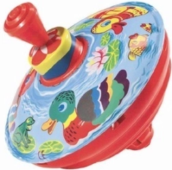 Denne klassiske snurretop imponerer med et attraktivt motiv af ællinger og enkel betjening. Børn træner hånd-øje-koordination på en sjov måde og lærer at arbejde med kraft og rytme, når de trykker på håndtaget.