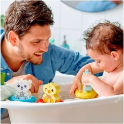 Sættet støtter læring gennem leg: børn træner hånd–øje-koordination, udforsker årsag og virkning ved at hælde vand fra skyen, og kan passe på dyrene med spanden. For endnu mere sjov kan ringene kobles sammen med andre badesæt.