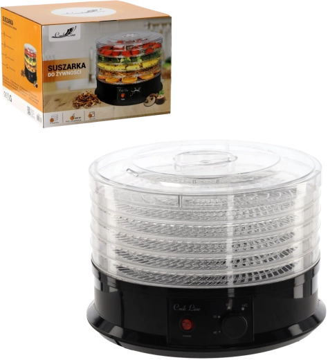 Den intuitive betjening med timer 1–48 timer og drejefunktion understøtter ensartet strømning af varm luft for jævne resultater uden behov for hyppig omrokering. De gennemsigtige lag giver dig konstant overblik over tørringsforløbet, og det kompakte design passer nemt ind i ethvert køkken.