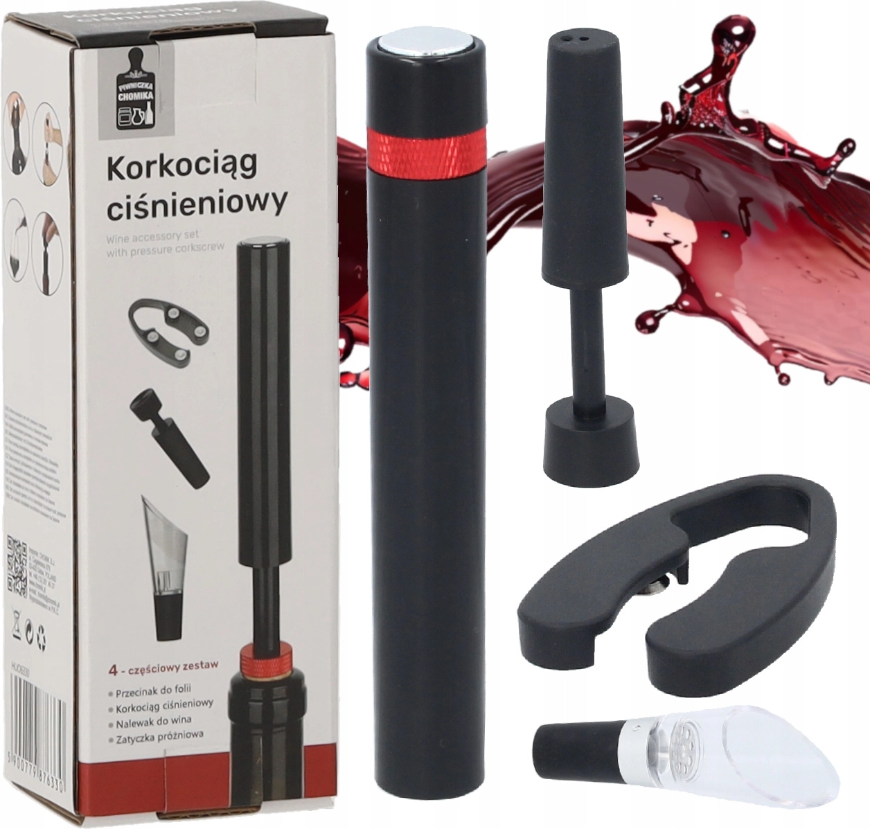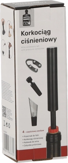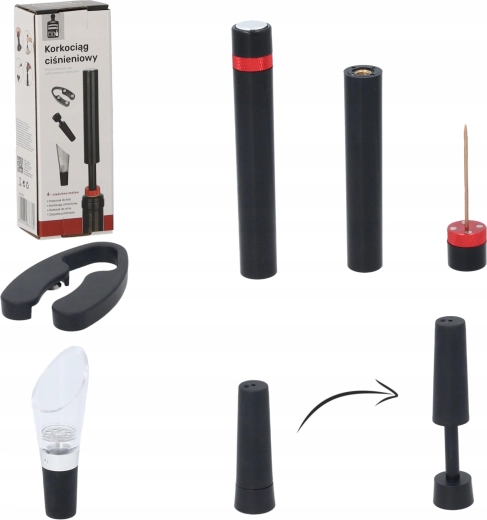 Med dette 4-delte sæt bliver hver skål til et lille ritual. Trykoptrækkeren åbner flasken hurtigt og med minimal indsats, folieskæreren gør flaskehalsen klar på sekunder, proppen holder vinen frisk længere, og skænkeproppen giver ren, jævn og iltet skænkning.