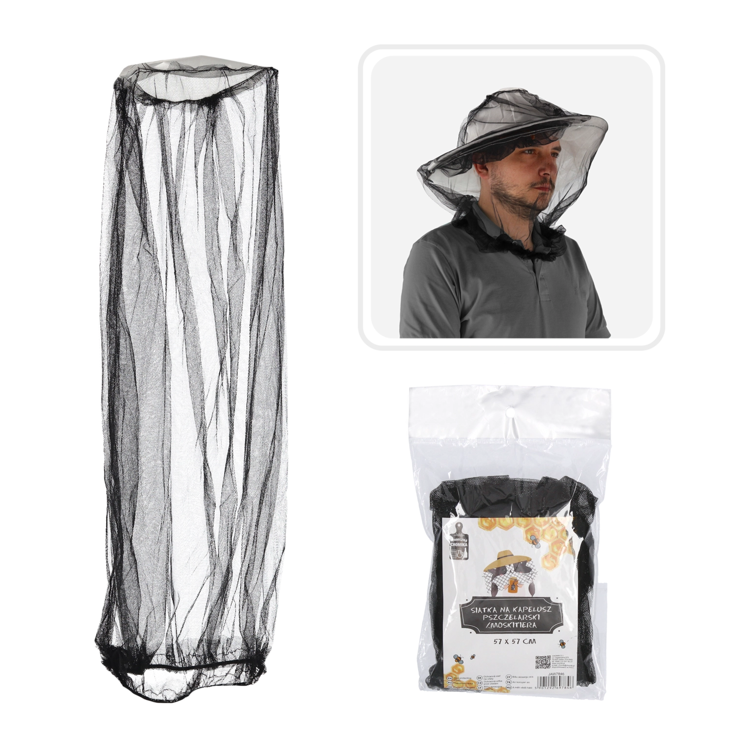 Praktisk myggenet til biavlerhat med målene 57 × 57 cm giver pålidelig beskyttelse mod bier, hvepse og andet stikkende insekt. Det er fremstillet af materialer af høj kvalitet, har et fintmasket net for fremragende udsyn og en elastisk kant for komfortabel og sikker pasform.