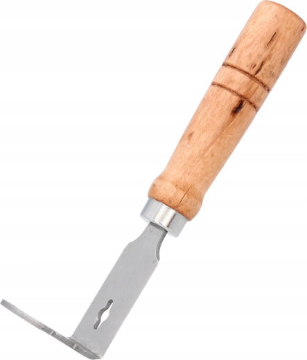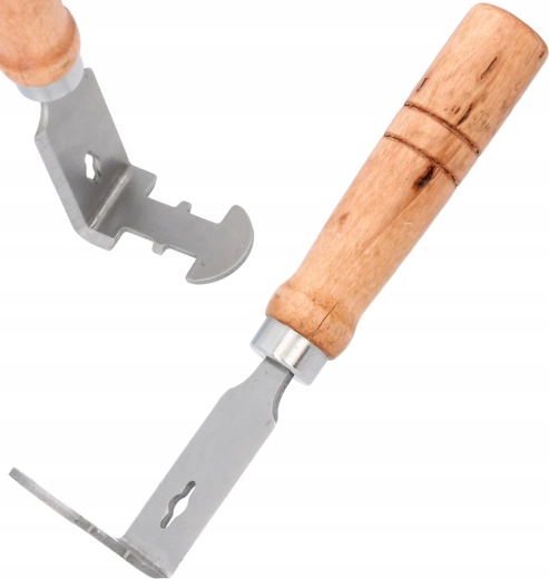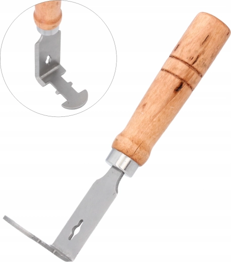 Takket være den let skærpede kant kan værktøjet også bruges til rengøring af vægge og udsparinger (slisser) i bistadet. Det praktiske hul i værktøjets hoved bruges til at trække fremskudte søm ud af rammerne eller til nem ophængning på væggen i værkstedet. De kompakte mål og den universelle form sikrer hurtig og effektiv vedligeholdelse af bistader uden unødig anstrengelse.