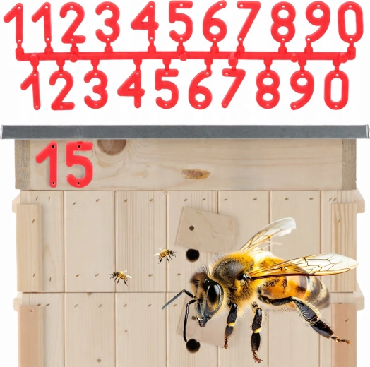 Dette alsidige sæt cifre er designet til nem og varig mærkning af bistader. Takket være klart synlige farver og letlæselig størrelse genkender du hurtigt de enkelte bistader, hvilket forkorter tiden ved inspektion og registrering af bifamilier.