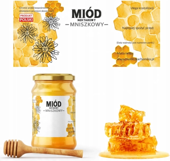 Gør mærkningen af dine biavlsprodukter nemmere med kvalitetsetiketter beregnet til mælkebøttehonning (mælkebøtte/mnisecká). Etikkerne har rigeligt plads til at angive honningtype, sidste anvendelsesdato og oplysninger om producenten, hvilket øger overskueligheden og troværdigheden af dine produkter.