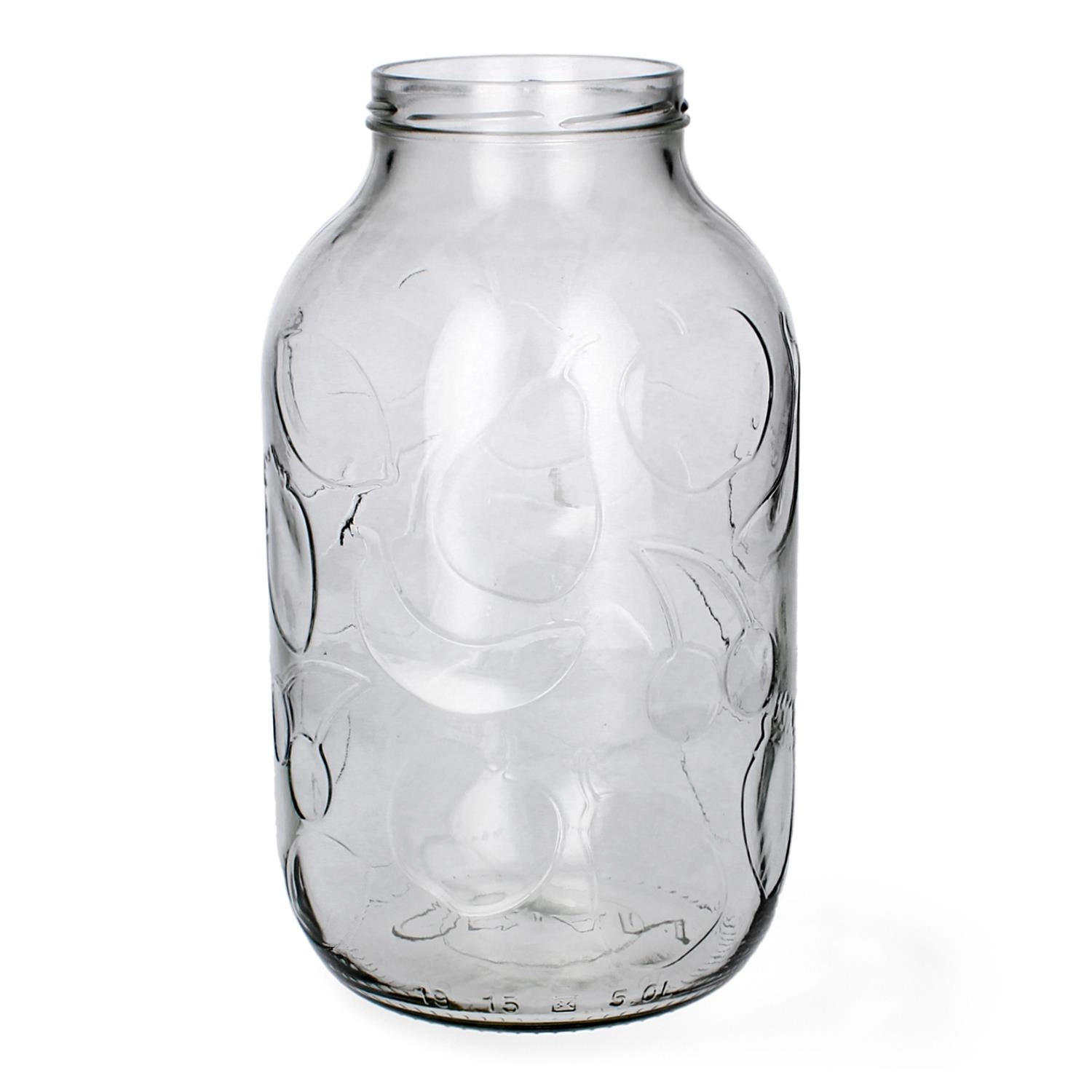 Stor glaskrukke på 5 l er ideel til marmelader, kompotter, syltede grøntsager og hjemmelavede likører. Den brede hals på 100 mm gør det nemt at fylde og rengøre, det gennemsigtige, kraftige glas giver overblik over indholdet, og dekoration med frugtmotiv giver stil til dit spisekammer. Den er kompatibel med metallåg på 100 mm, egner sig til pasteurisering og kan tåle opvaskemaskine.