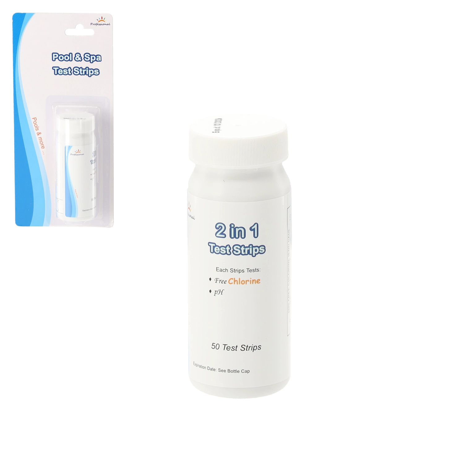 Hold vandet i pool og spa krystalklart og sikkert. 2-i-1 teststrimler måler hurtigt og pålideligt pH og frit klor på få sekunder. Med den tydelige farveskala kan du nemt aflæse resultaterne og sikre den korrekte kemiske balance for behagelig og hygiejnisk badning.