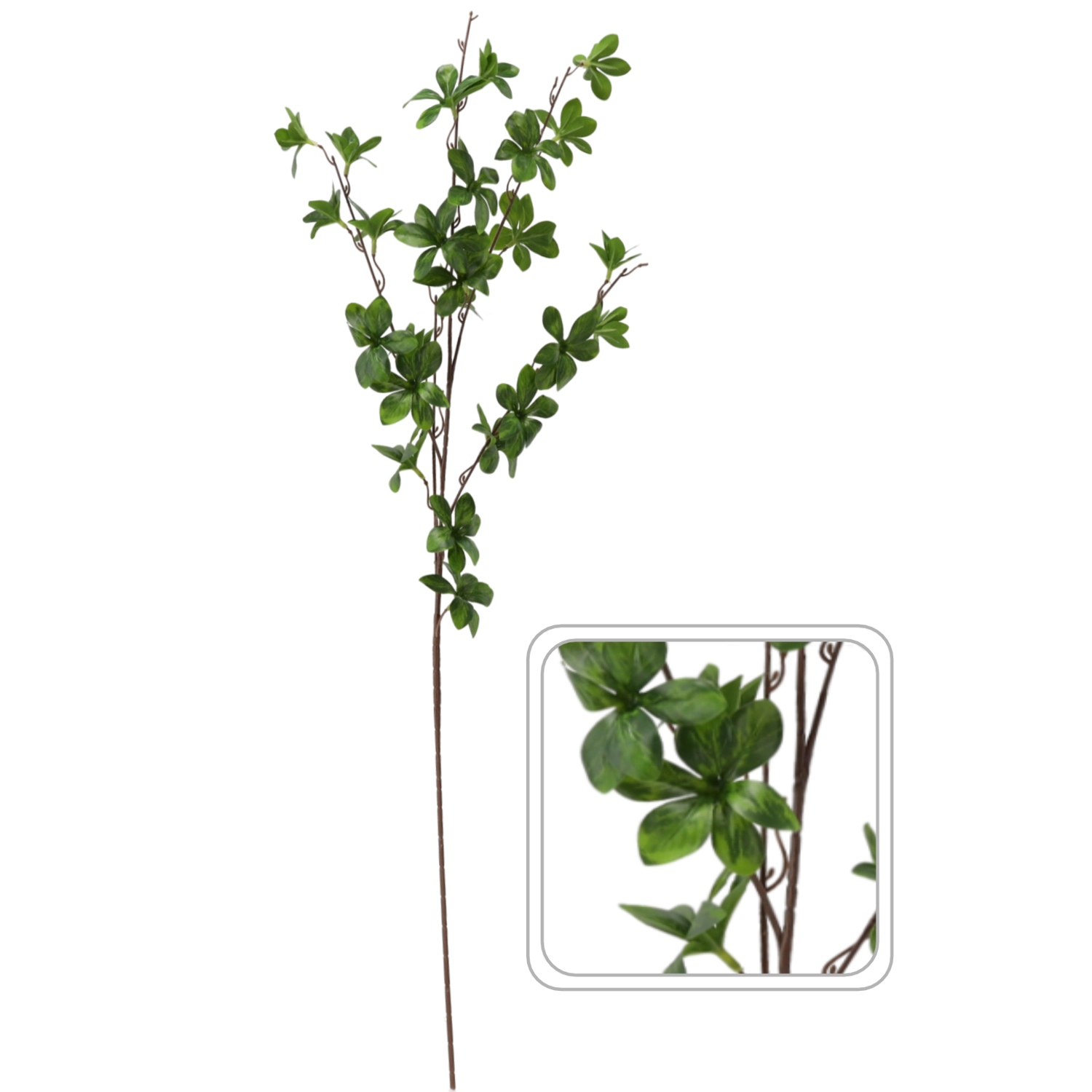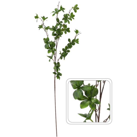 Denne kunstige grønne kvist efterligner troværdigt en naturlig plante og giver dit hjem, kontor eller kommercielle rum et friskt look uden behov for pleje. Takket være de realistiske blade og den højkvalitets udførelse egner den sig glimrende til vaser, skåle og dekorative arrangementer.