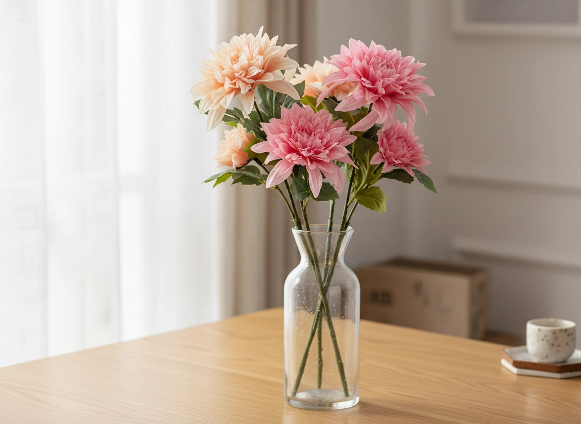 Denne kunstige blomst i et mix af to farver (romantisk rosa og blid fersken) passer til stue, soveværelse, kontor og kommercielle rum. Kræver hverken vanding eller særlig pleje, og bevarer alligevel et frisk udseende året rundt.