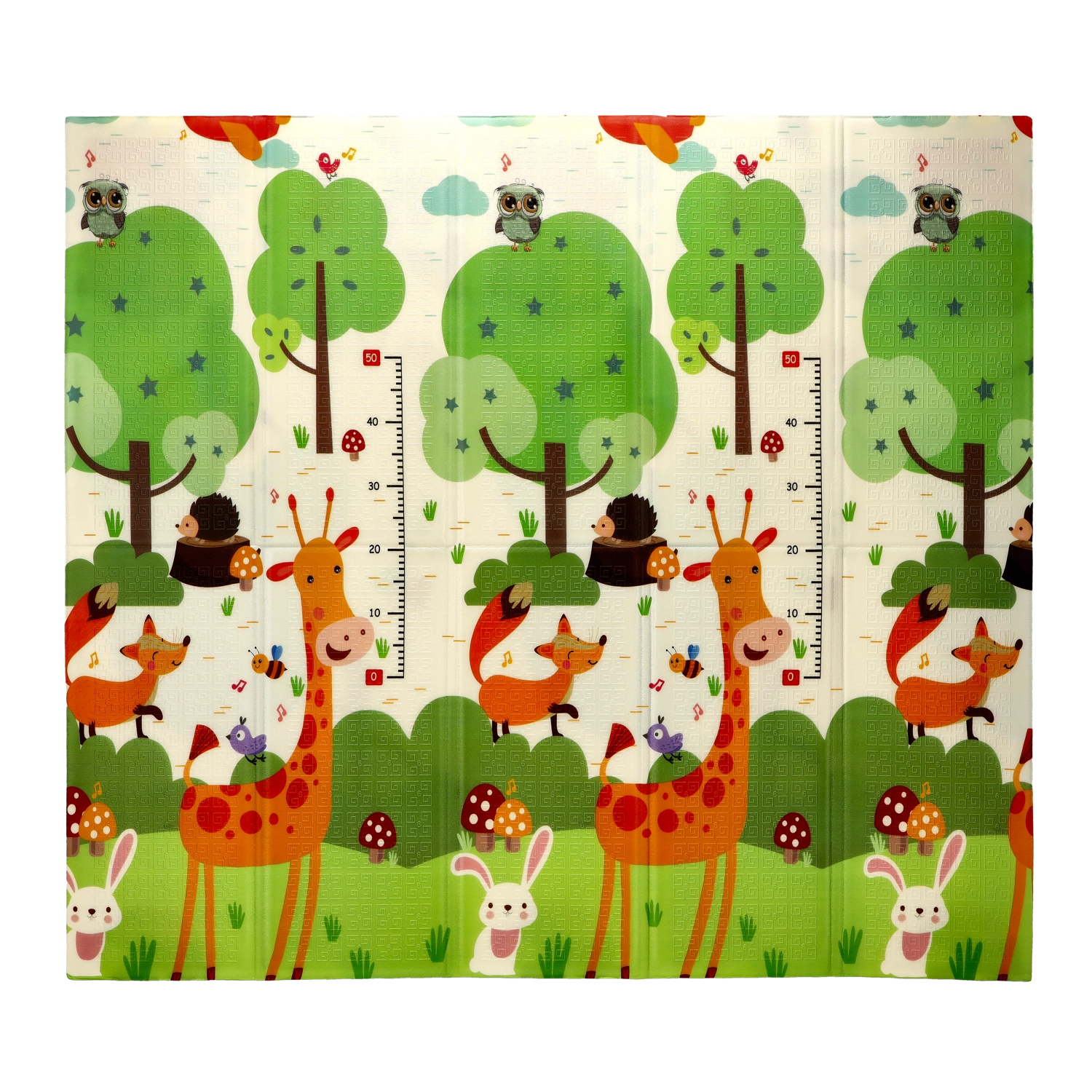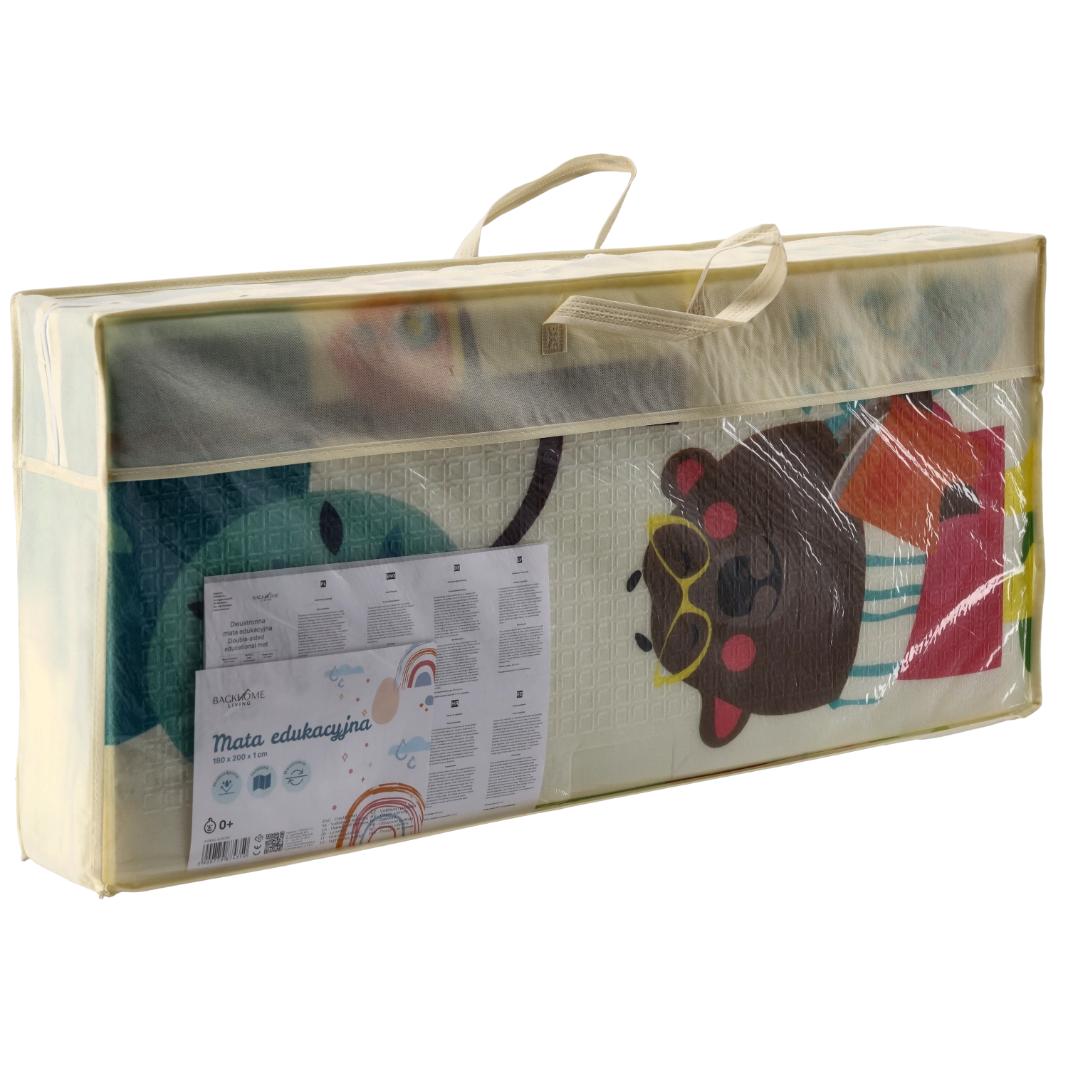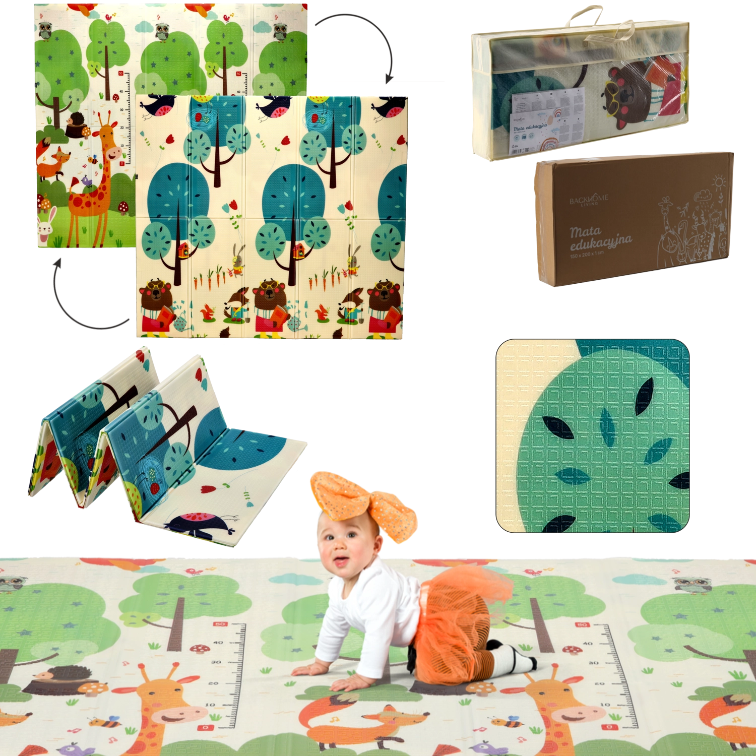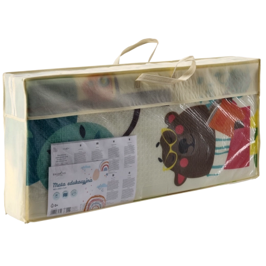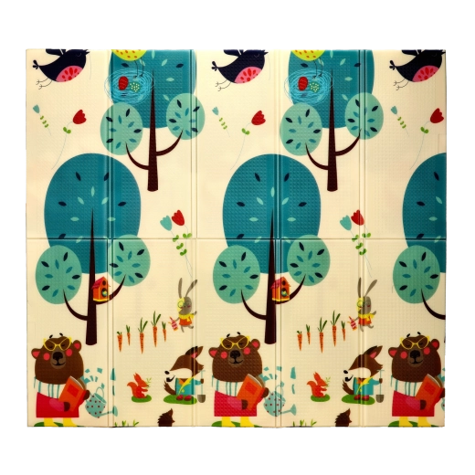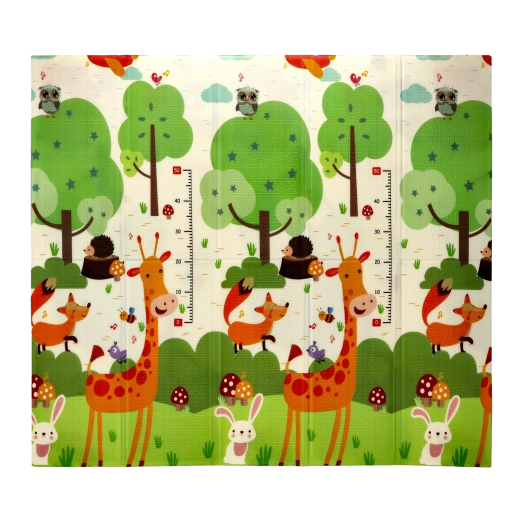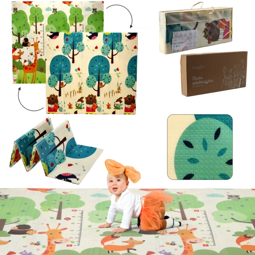 De dobbeltsidede motiver med dyr og træer understøtter naturligt sanseudviklingen, indlæring af farver og former og inspirerer til legende aktiviteter. Måtten er let at rengøre, optager ikke fugt og har en stabil, skridsikker overflade.