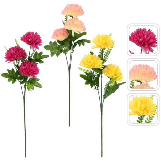 Denne kunstige krysanteme efterligner en levende blomst – fra nøje formede kronblade til realistiske blade. Takket være det holdbare materiale bevarer den farver og form i lang tid uden vanding eller særlig pleje.